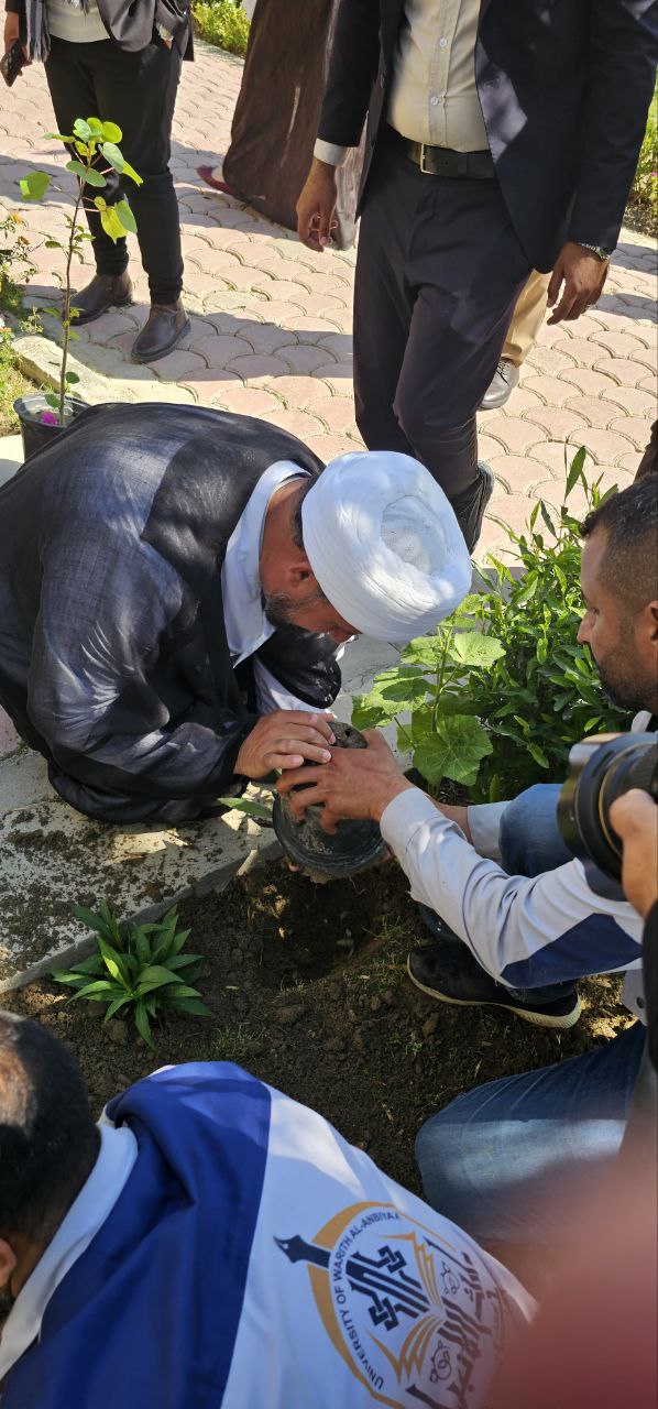 كادر كلية العلوم الإسلامية يشارك في حملة التشجير داخل جامعة وارث الأنبياء