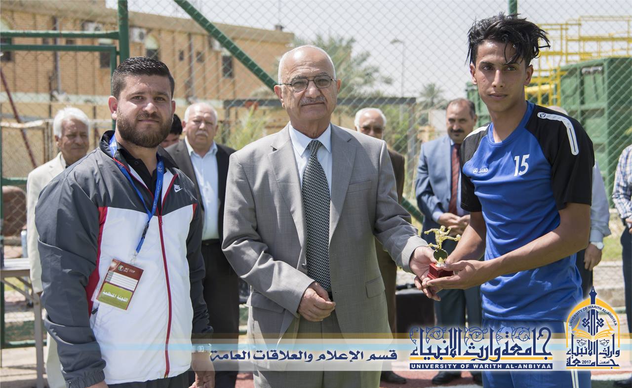 شهدت جامعة وارث الانبياء اختتام البطولة الكروية على ملعبها حيث ذكر رئيس قسم النشاطات الطلابية م.م همام الخفاجي أن البطولة الكروية لجامعات كربلاء المقدسة شهدت منافسة قوية بين الفرق المشاركة التي نجحت بالتأهل الى الدور الحاسم، وتمكن فريق كلية ابن حيان الجامعة من احراز اللقب بعد فوزه على فريق جامعة أهل البيت في المباراة التي قادها حكام دوليين بنتيجة (5-1).