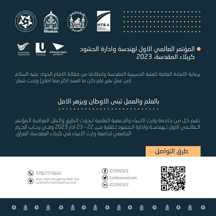 لأول مرة في العراق "المؤتمر العالمي الاول لهندسة وادارة الحشود كربلاء المقدسة،2023"