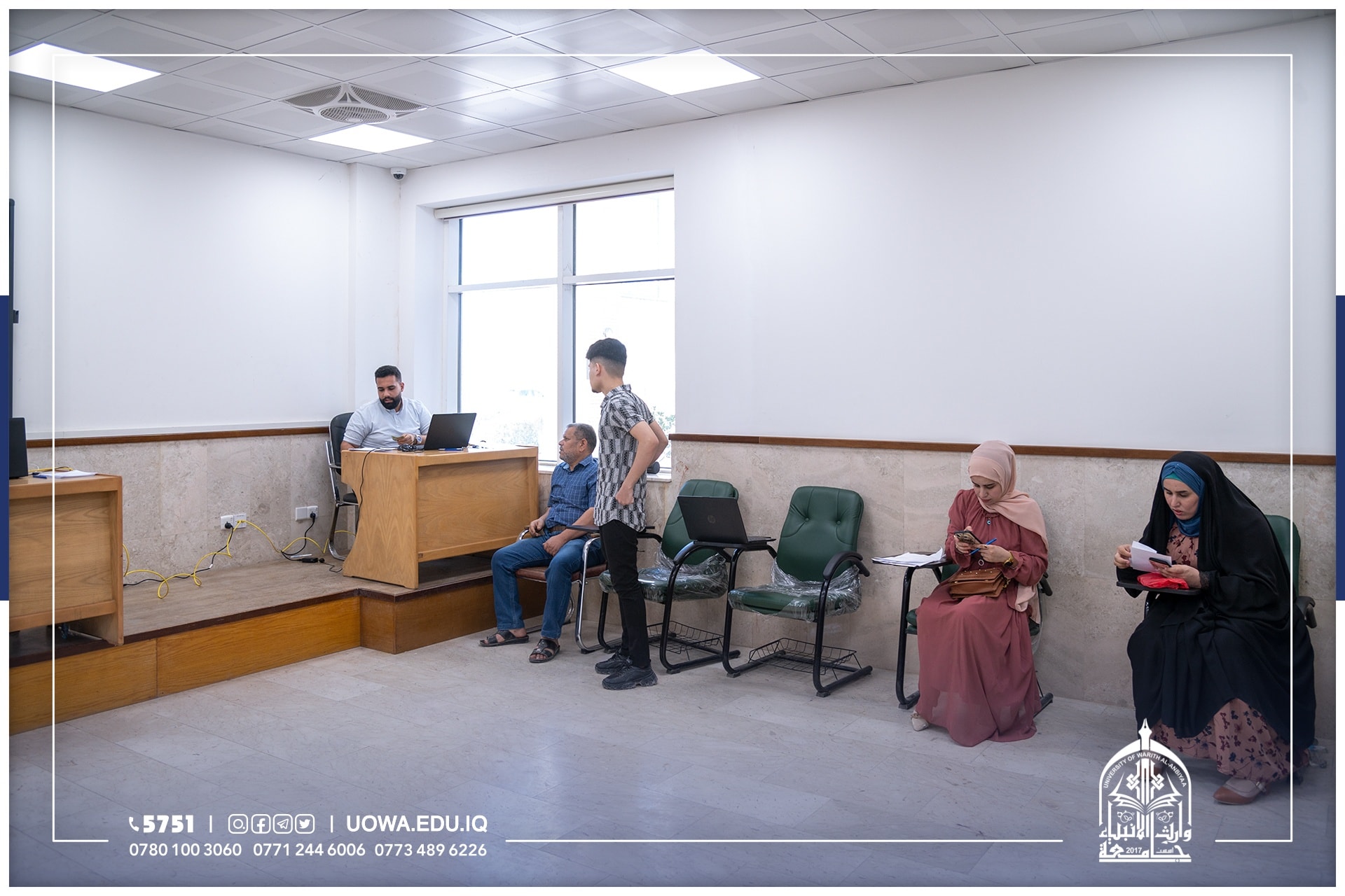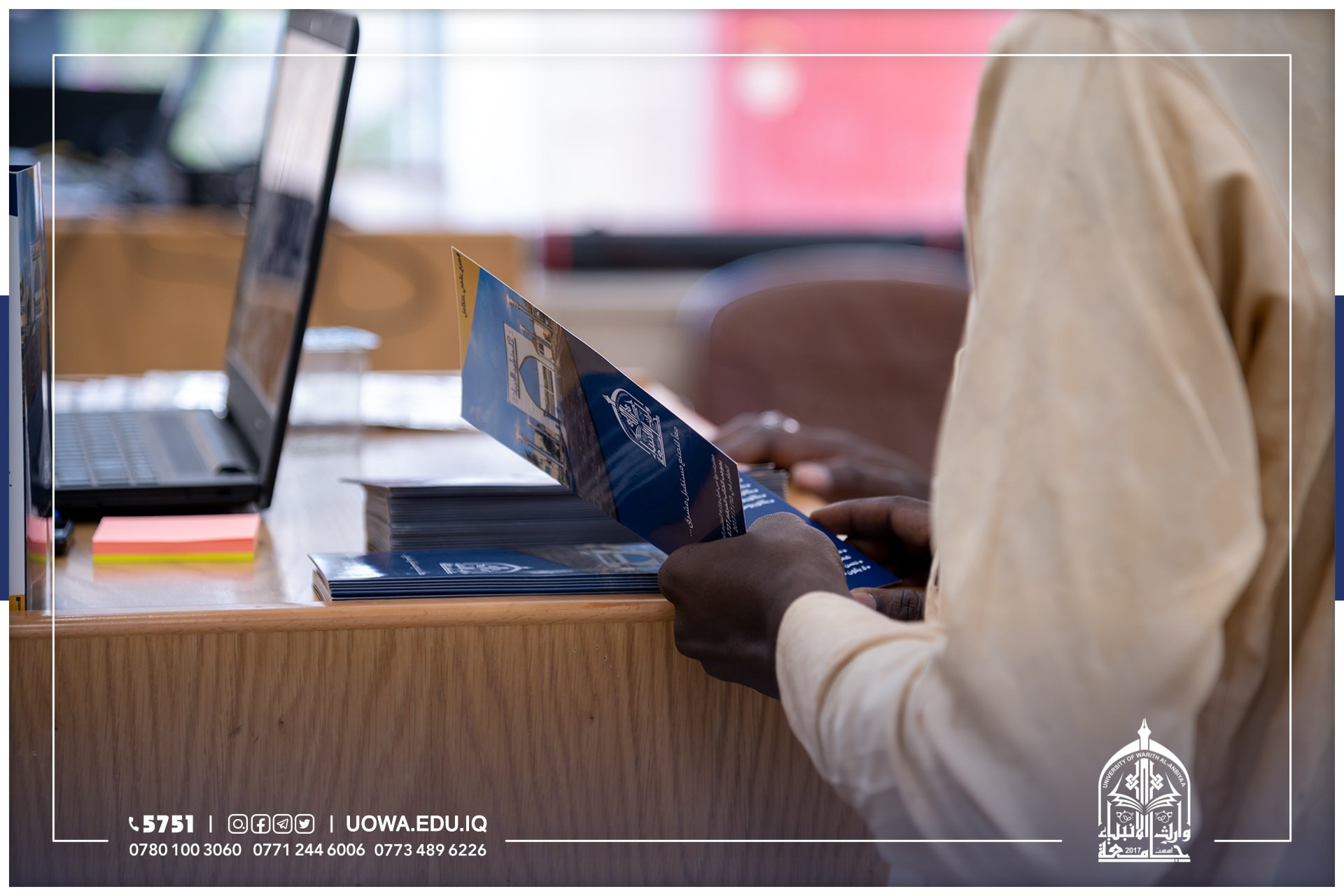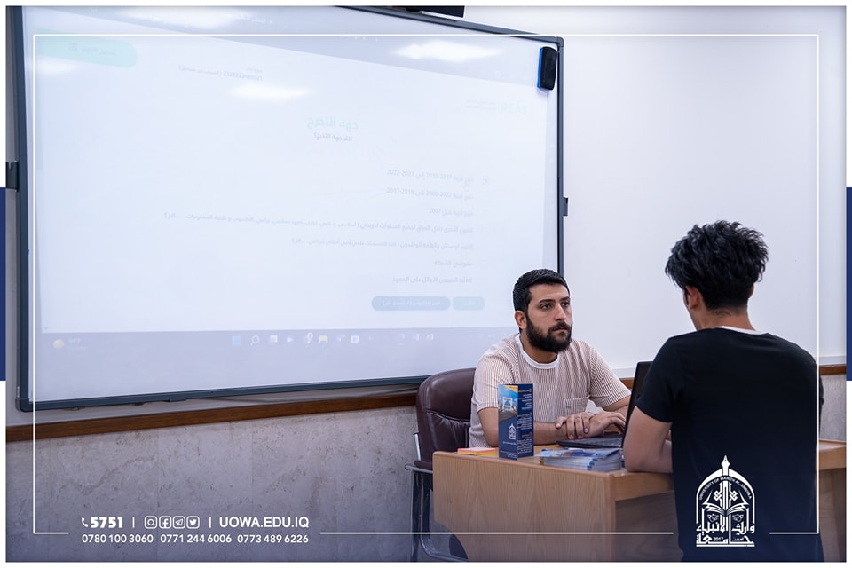 جانب من استقبال فريق التسجيل في جامعة وارث الانبياء (عليه السلام) للطلبة الاعزاء واولياء امورهم الكرام للإجابة عن استفساراتهم ومساعدتهم في انجاز اولى خطوات التقديم، وهي انشاء حساب الطالب وملء البيانات وتفعيل القنوات الخاصة.