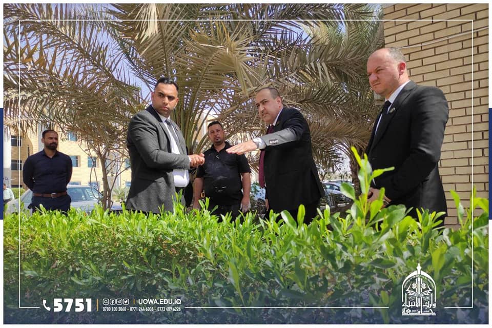 للوقوف على اهم الاستعدادت للعام الدراسي القادم، جانب من الجولة التفقدية لرئيس جامعة وارث الأنبياء (عليه السلام) الاستاذ الدكتور أبراهيم سعيد الحياوي برفقة بعض روساء الاقسام الفنية والإدارية، في أروقة ومباني الجامعة للوقوف على أحتياجاتها وأستعدادتها، اضافة إلى تهيئة مساحات خضراء وواجهات عمرانية جديدة، تحضيرا للعام الدراسي الجديد.