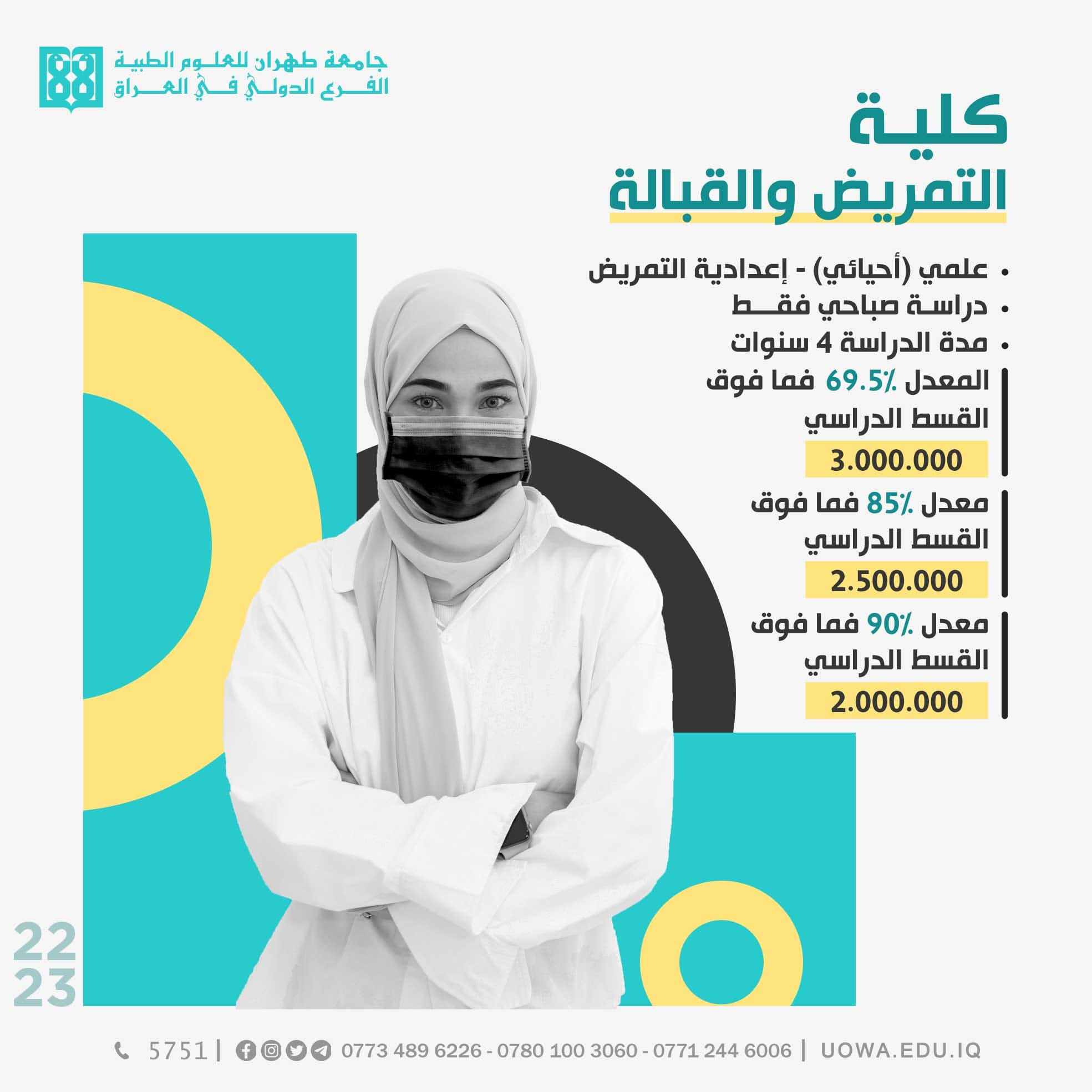 الى الطلبة الراغبين بالتقديم على كلية (التأهيل والعلاج الطبيعي،وكلية التمريض والقبالة) في جامعة السبطين