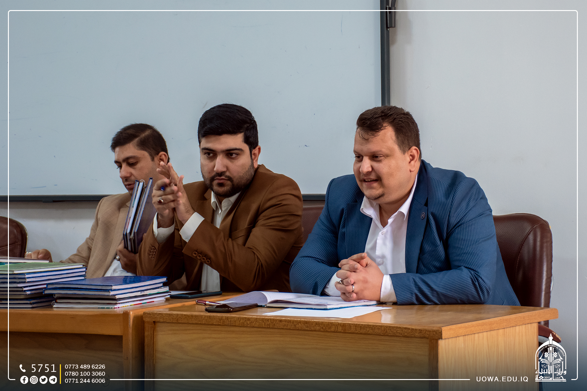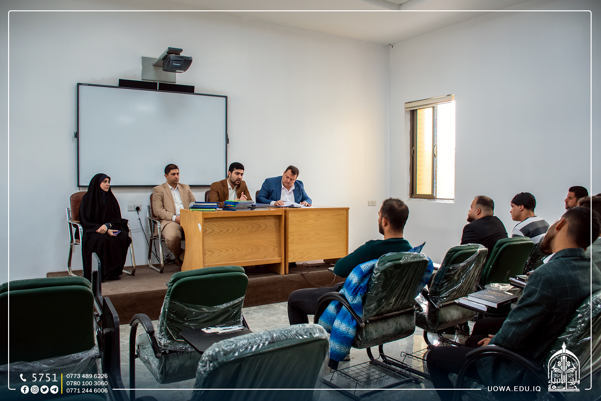 جانب مصور من مناقشة سجلات التدريب الصيفي لطلبة المرحلة الرابعة، ضمن متطلبات التخرج لطلبة كلية القانون في جامعة وارث الانبياء (عليه السلام).