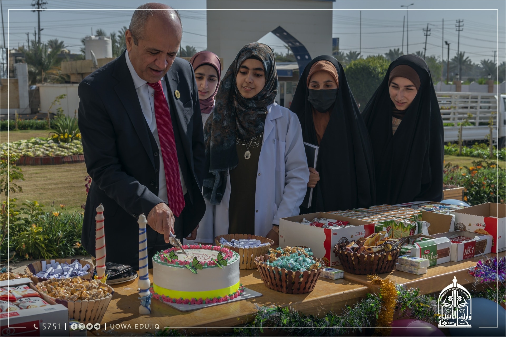 طالبات كلية الطب في جامعة وارث الانبياء (عليه السلام) يبادرن بإحياء ذكرى مولد السيدة فاطمة الزهراء(عليها السلام)، بحضور السيد عميد الكلية الاستاذ الدكتور احمد العزاوي.
