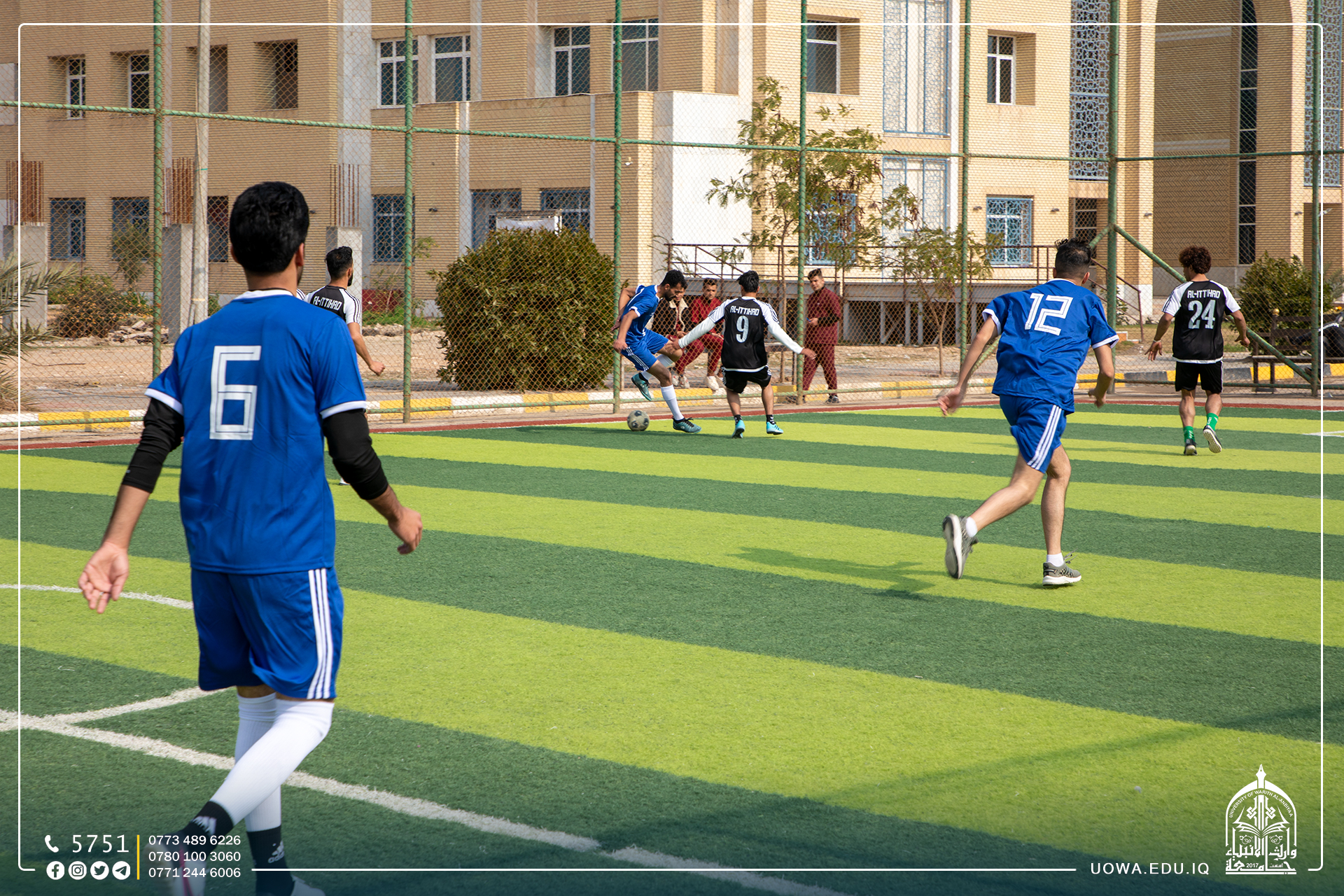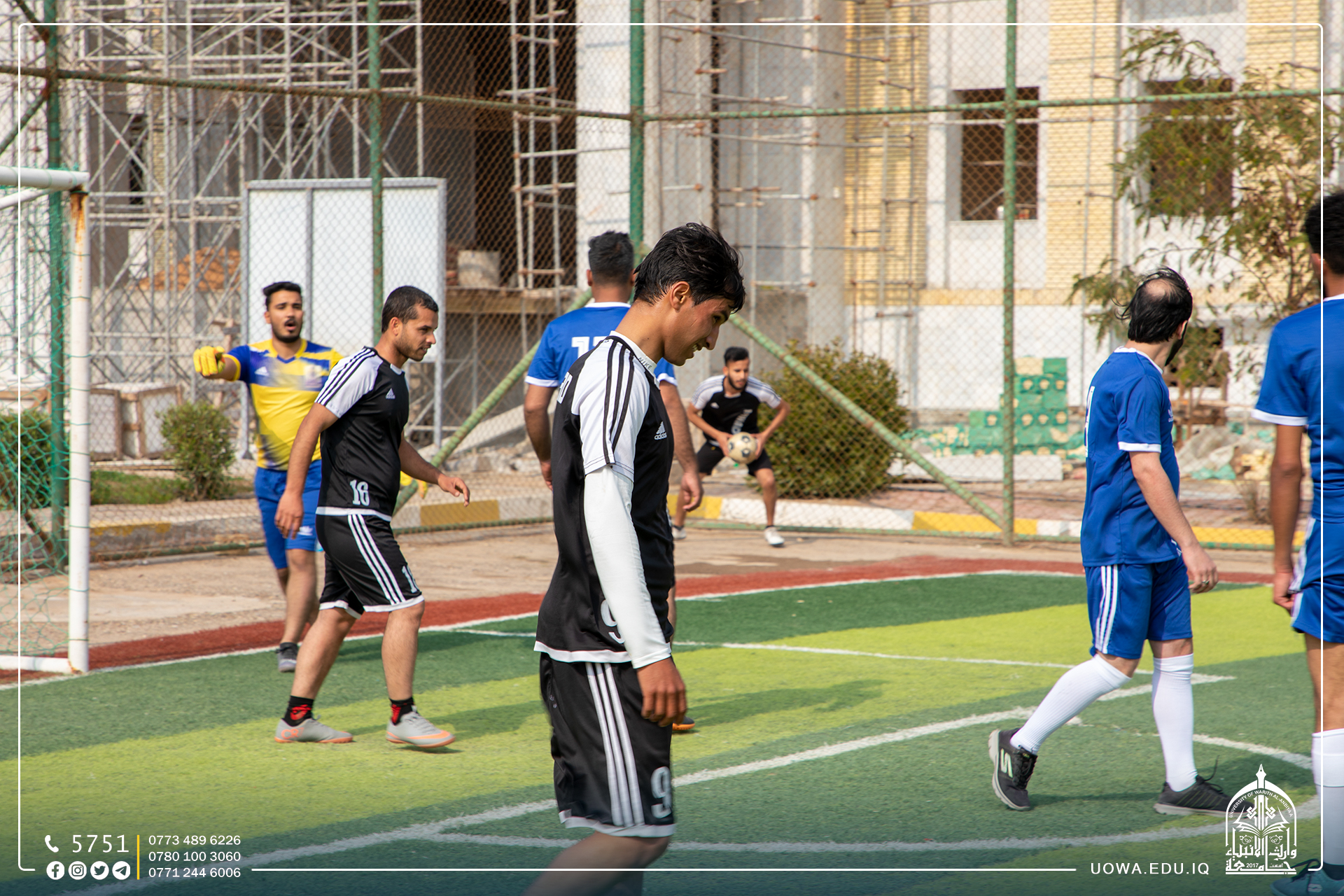 استمرار منافسات بطولة الاساتذة وموظفي جامعة وارث الانبياء(عليه السلام) لخماسي كرة القدم، التي يقيمها قسم النشاطات الطلابية بالتعاون مع مركز رعاية الشباب.