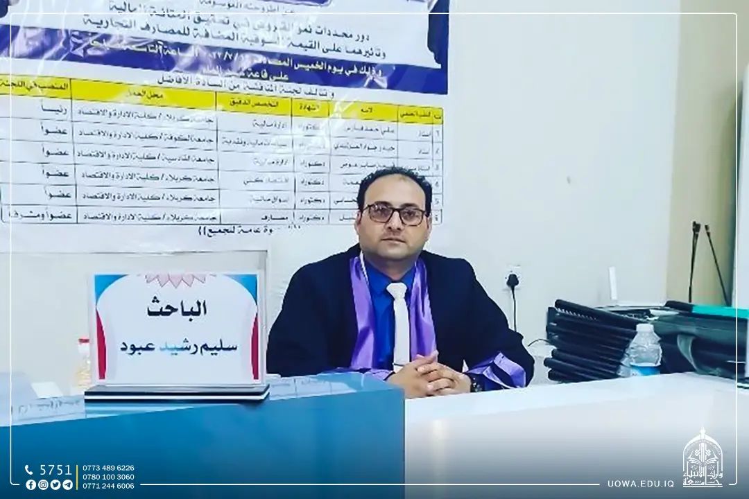 حصل التدريسي في كلية الادارة والاقتصاد م.م. سليم رشيد عبود على شهادة (الدكتوراه) في العلوم المالية والمصرفية من جامعة كربلاء/ كلية الإدارة والاقتصاد/ قسم العلوم المالية والمصرفية.
