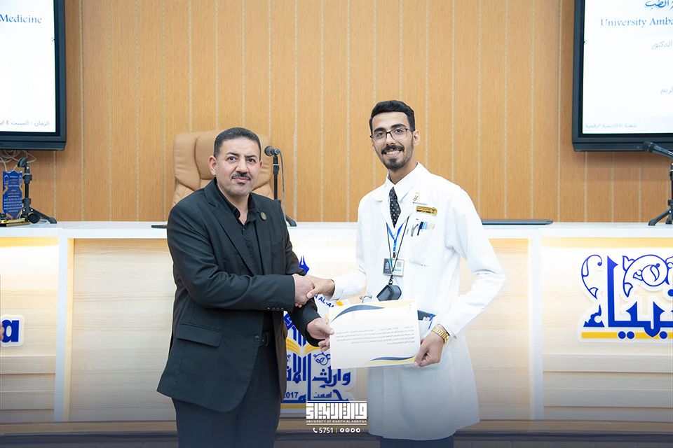 وخلال حفل التتويج، أكد الأستاذ الدكتور إبراهيم الحياوي على أهمية اهتمام الطلبة بتحصيل العلم باعتبارهم أطباء المستقبل الذين يتحملون مسؤولية كبيرة أمام المجتمع، إلى جانب أهمية الجوانب القيادية والمهنية للطبيب.