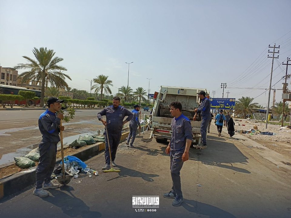 جامعة وارث الأنبياء تطلق حملة تنظيف واسعة بعد انتهاء زيارة الأربعين
