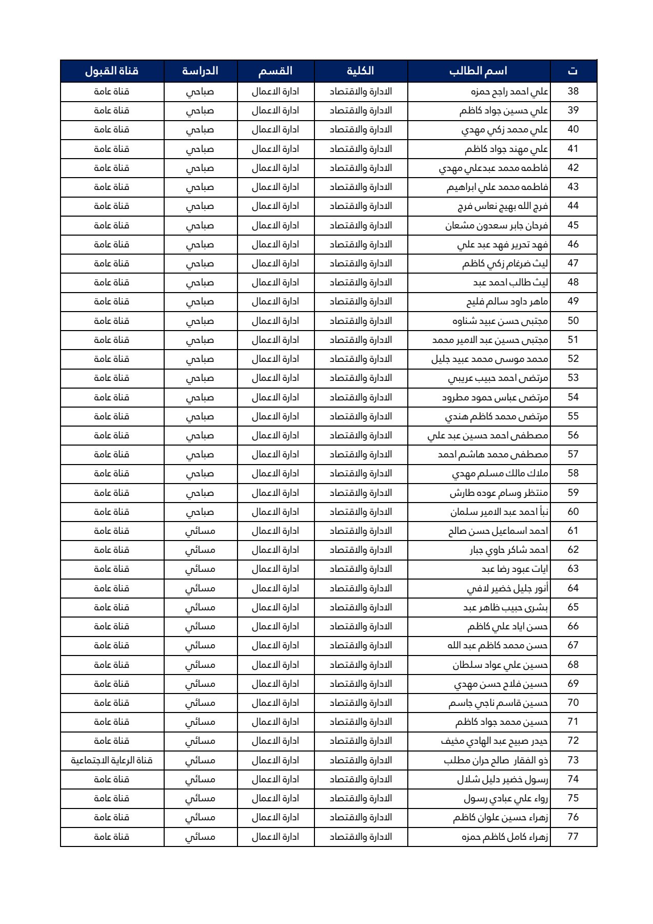 اسماء طلبة المرحلة الأولى قسم ادارة الاعمال 2024-2025