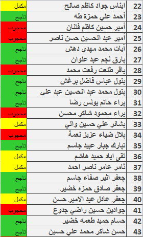 نتائج امتحانات الكورس الاول قسم المحاسبة المرحلة الثانية للدراسة الصباحية