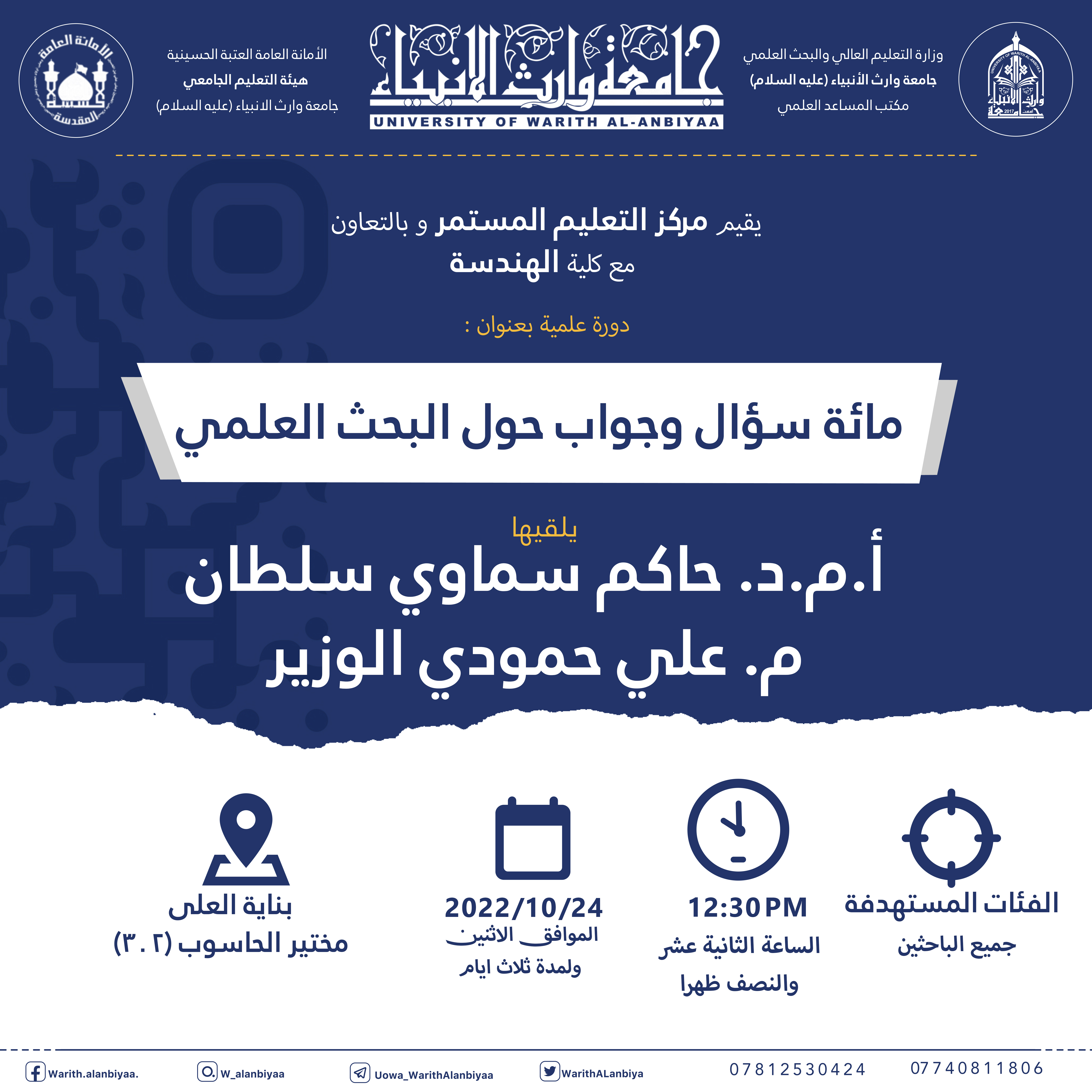 اعلان دورة مائة سؤال وجواب حول البحث العلمي