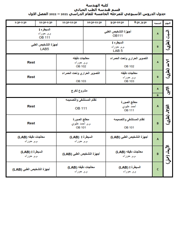 فتح باب الاعتراض على نتائج الامتحانات النهائية للفصل الدراسي الثاني لطلبة قسم هندسة الطب الحياتي
