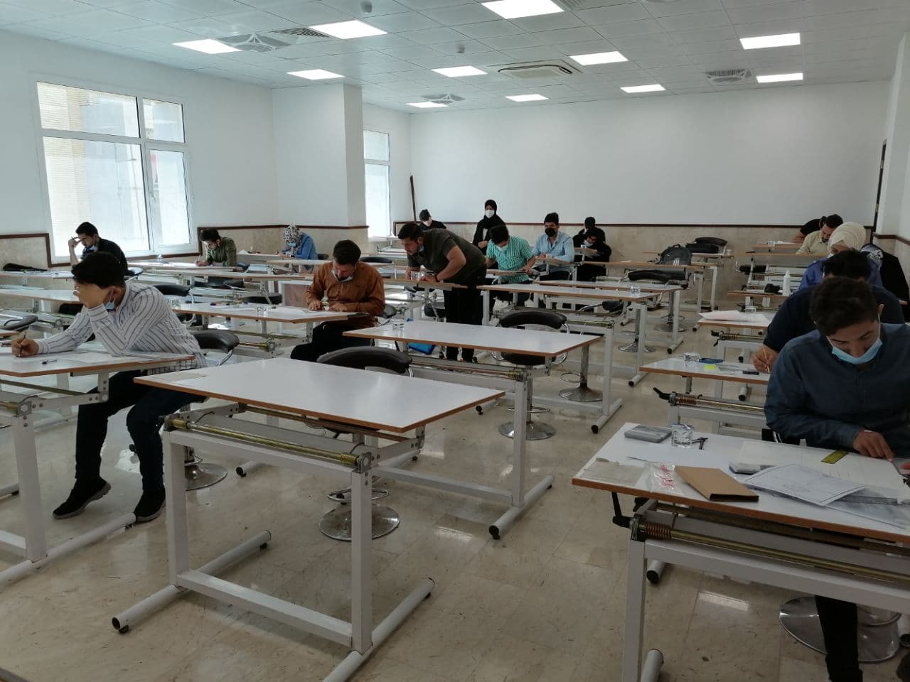 جانب من امتحان مادة الرسم الهندسي لطلبة قسم الهندسة المدنية