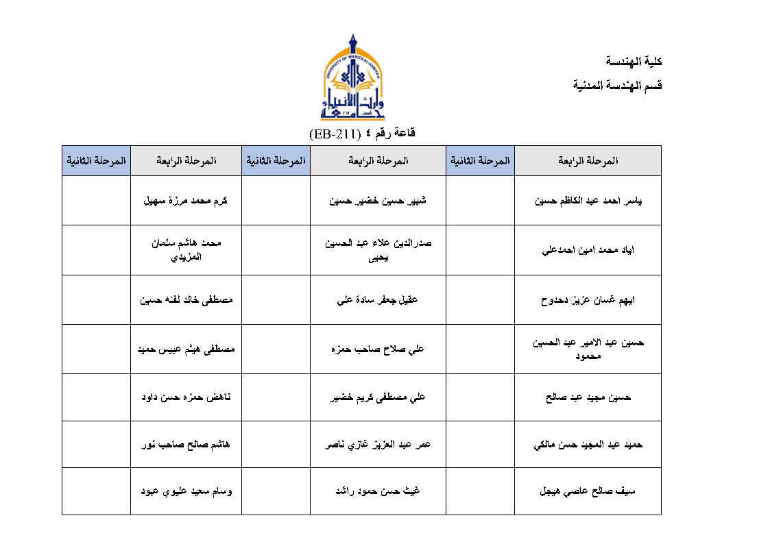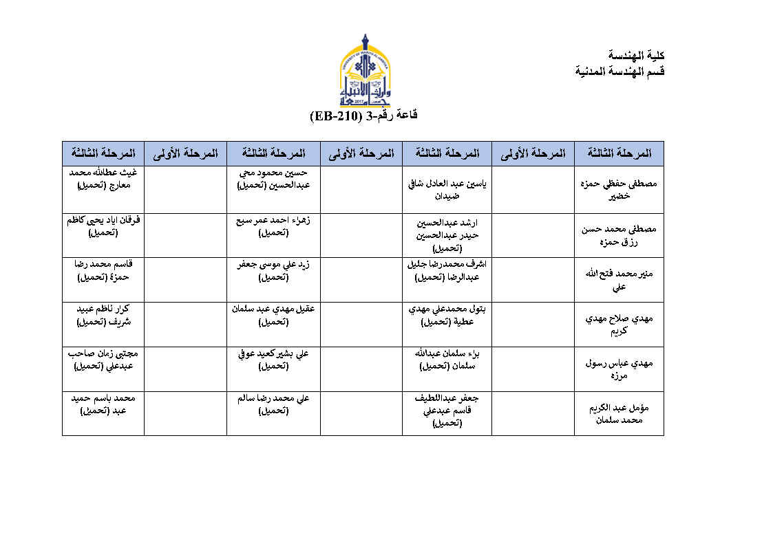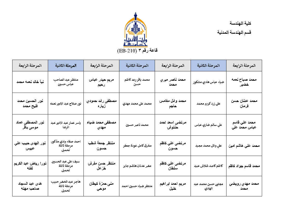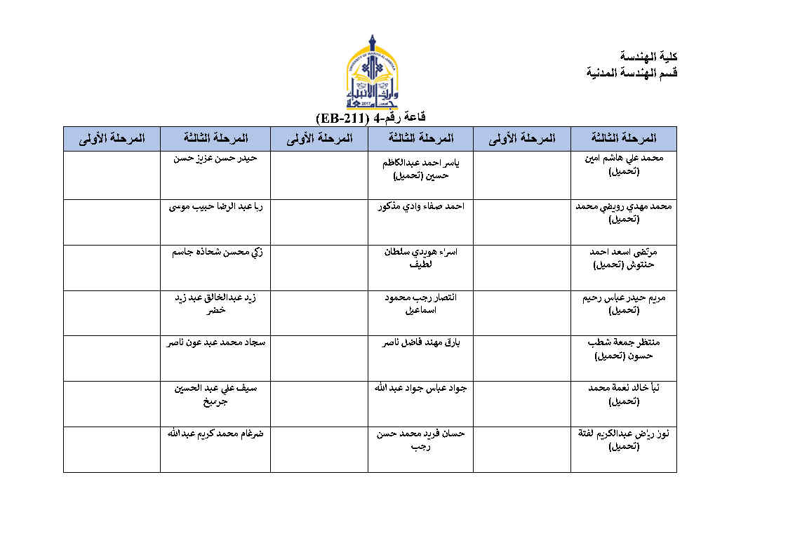 جدول امتحانات النهائية للفصل الاول لقسم الهندسة المدنية مع خارطة توزيع الطلاب في القاعات مع التعليمات