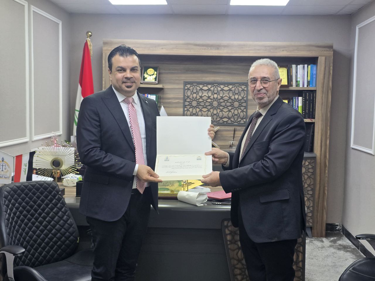 عميد كلية العلوم الإسلامية يكرّم الدكتور محمد العامري بكتاب شكر وامتنان