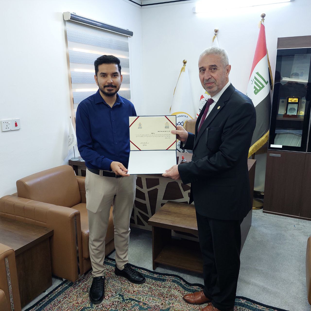 نتقدم بأحر التهاني للدكتور اياد كريم الصلاحي بهذا الإنجاز العلمي، متمنين له المزيد من التقدم والنجاح في مسيرته العلمية والأكاديمية.