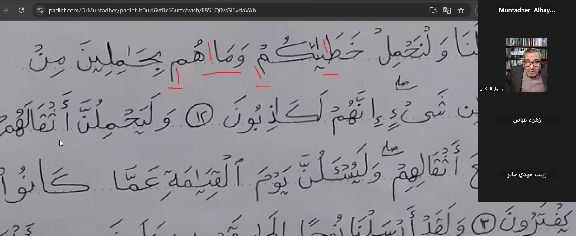كلية العلوم الإسلامية تقيم الورشة الثالثة لمشروع "كلمات من النور" لتصحيح التمارين ومراجعة الأداء عبر الإنترنت