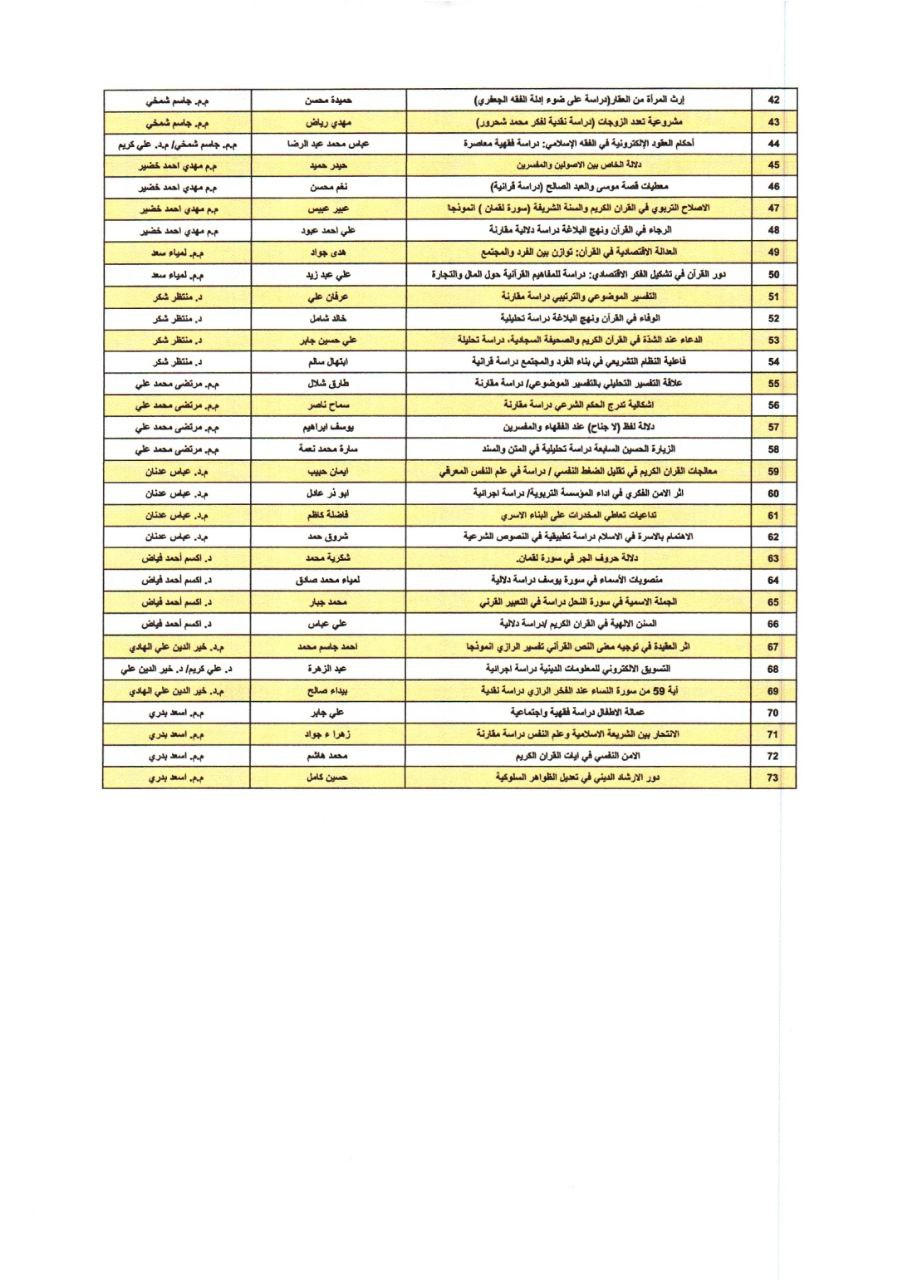 بحوث التخرج لطلبة كلية العلوم الاسلامية (قسم علوم القران - قسم الفقه واصوله) للعام الدراسي 2024 - 2025