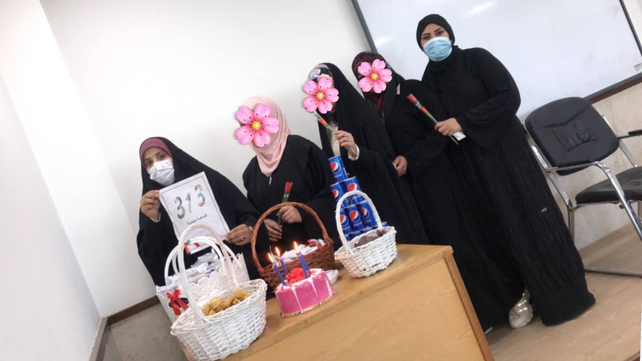 إحياء ذكرى ولادة منقذ البشرية الإمام المهدي المنتظر ( عجل الله فرجه) في اروقة كليتنا من قبل فريق كل مهدوي قائد الذي يضم مجموعة من طالبات المرحلة الثانية في قسم علوم القرآن وكان هناك تفاعلا واضحا من قبل الطلبة والكادر التدريسي مع هذه الفعالية