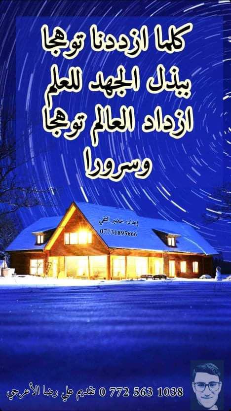 من ضمن النشاطات الطلابية التي يبديها طلاب كلية العلوم الإسلامية مشاركة من الطالب علي رضا لبعض الاقوال التي يُستمد منها الموعظة والحكمة .