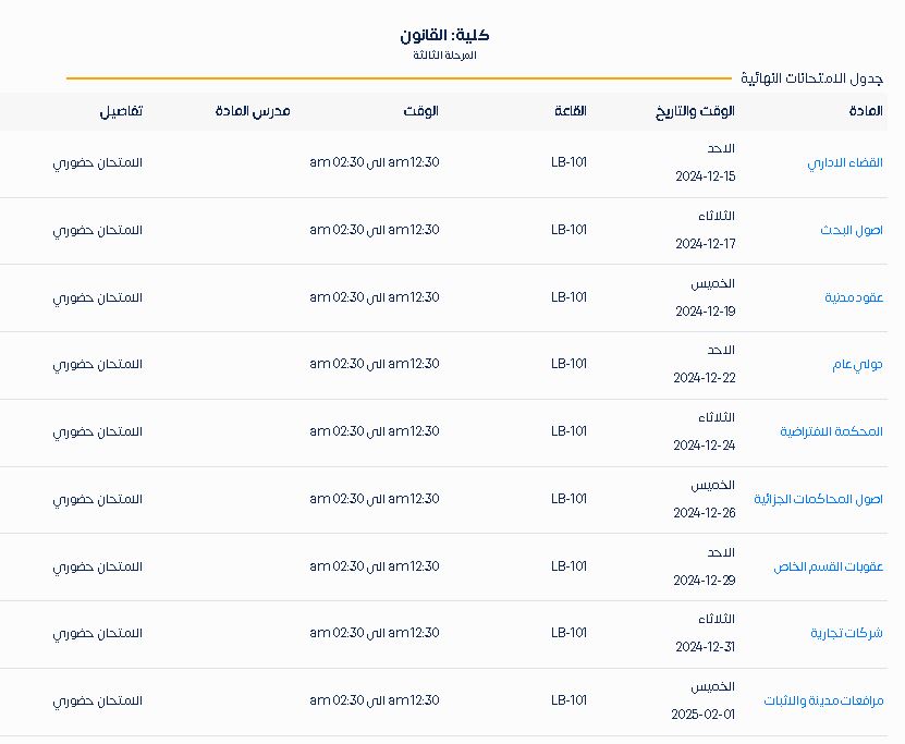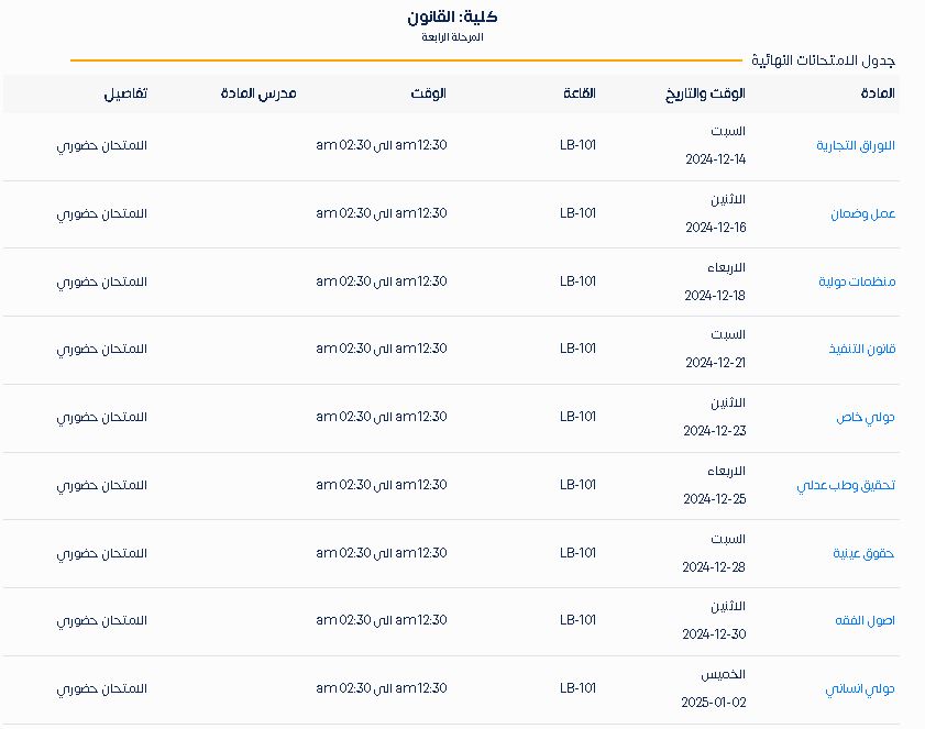 لمعاينة الجدول اضغط هنا : جدول المرحلة الرابعة