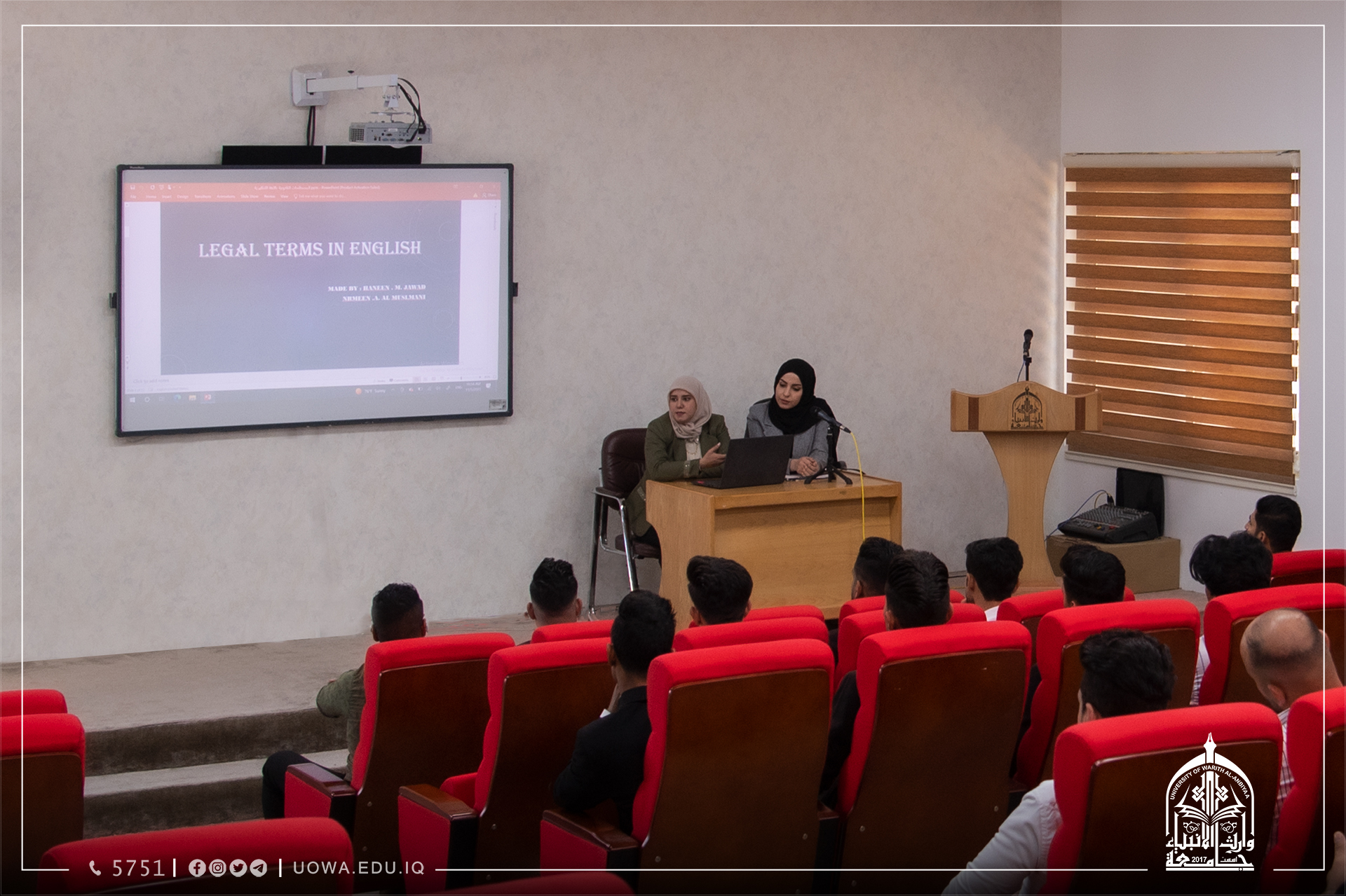 اقام مركز التعليم المستمر وبالتعاون مع كلية القانون دورة علمية بعنوان"المصطلحات القانونية في اللغة الانكليزية" قدمتها م.م حنين محمدجواد و م.م نرمين عبد الامير سلمان، ولمدة ثلاث ايام