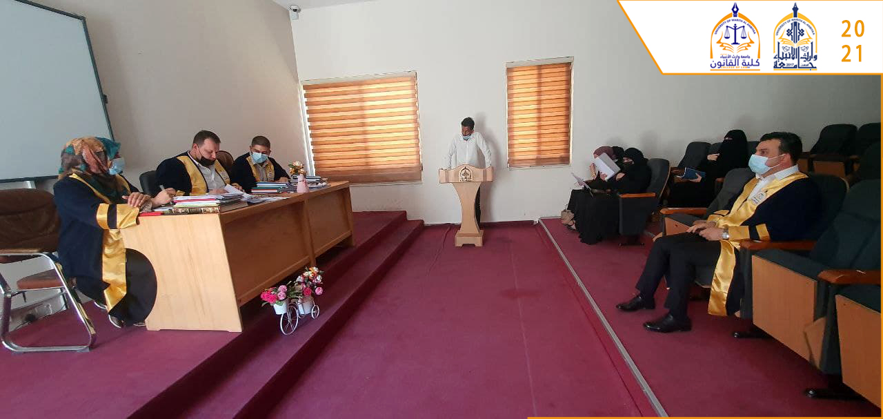 لليوم الثالث على التوالي تستمر كلية القانون بمناقشات بحوث الطلبة للمرحلة الرابعة للعام الدراسي 2020-2021 وفق اجواء علمية رصينة بغية الوصول الى افضل النتائج.