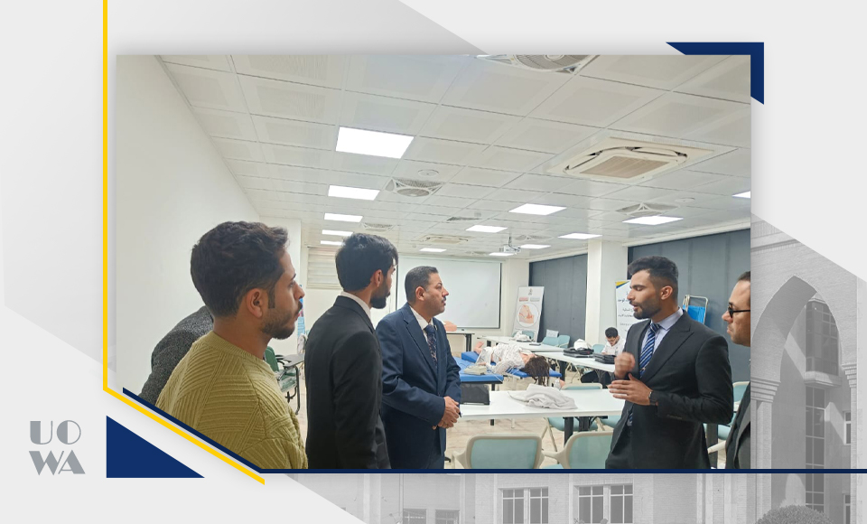 السيد عميد كلية الطب وارث الانبياء (ع) يستقبل وفد مركز طب الحشود التابع لهيئة الصحة والتعليم الطبي في العتبة الحسينية المقدسة للاطلاع على استعدادات الطلاب و الكوادر التدريسية الذين سيشاركون في خدمة زائري الامام الحسين خلال الزيارة الشعبانية. وقد اطلع الوفد على امكانات الكلية العلمية و التقنية و مختبر المهارات المتطور لتدريب الطلبة و اشاد الوفد بالاهتمام الكبير و الاستعدادات التي تمت من تدريب و دعم مادي وًمعنوي من قبل عمادة الكلية للاحتفالية و الزيارة الشعبانية وخدمة زائري سيد الشهداء عليه السلام .