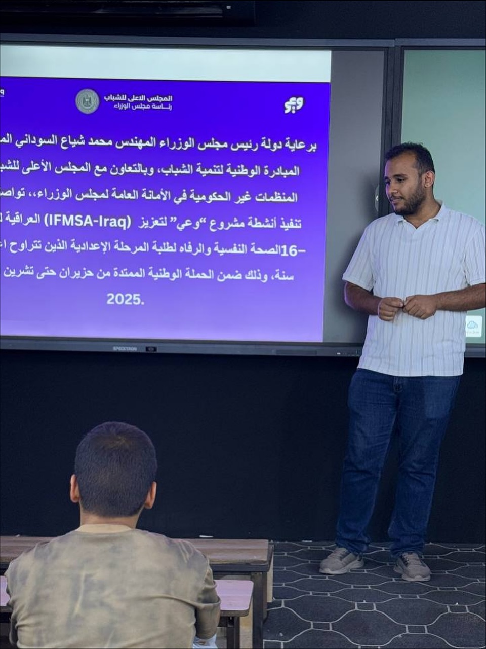 قدّم مجموعة من طلبة كلية الطب في جامعة وارث الأنبياء (ع) عدداً من المحاضرات الميدانية ضمن مشروع (وعي) وذلك بدعمٍ من دولة رئيس مجلس الوزراء السيد محمد شياع السوداني، وبالتعاون مع الجمعية العراقية لطلبة الطب (IFMSA-Iraq).وتهدف هذه المحاضرات إلى رفع مستوى الوعي لدى الطلبة حول مجموعة من القضايا النفسية والاجتماعية المهمة من بينها الاكتئاب، والتنمّر والقلق ضمن الجهود الرامية إلى تعزيز الصحة النفسية وبناء بيئة جامعية أكثر وعيًا وتفهّمًا.تؤكد عمادة كلية الطب تشجيعها الدائم لمبادرات الطلبة وتحرص على حضورهم الفاعل في الأنشطة التوعوية.