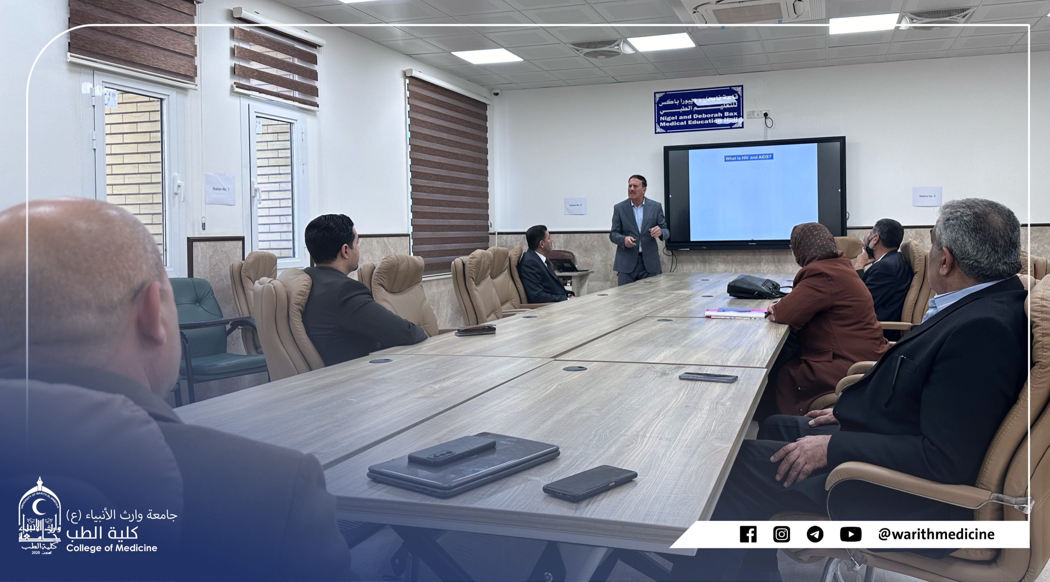 برعاية السيد رئيس جامعة وارث الانبياء عليه السلام الاستاذ الدكتور ابراهيم سعيد المحترم واشراف وحضور السيد عميد كلية الطب الاستاذ الدكتور علي عبد سعدون المحترم اقامت كلية الطب ندوة علمية بعنوان الجديد في علاج مرض الايدز وحاضر فيها الاستاذ الدكتور فلاح الحمامي.