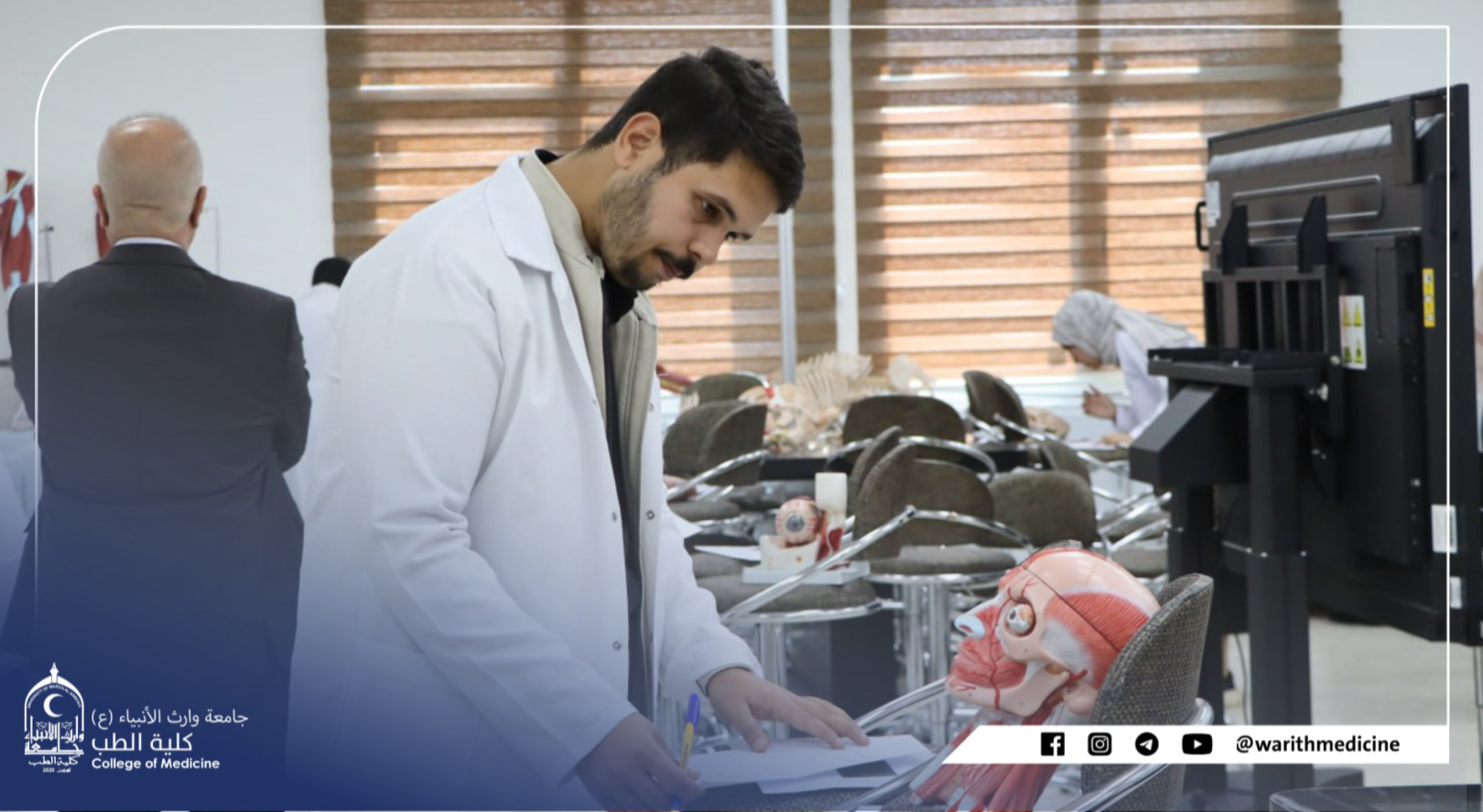 بأشراف ومتابعة السيد عميد كلية الطب الاستاذ الدكتور علي عبد سعدون الغزي المحترم والسيد معاون العميد للشؤون العلمية المدرس الدكتور رياض حنيوه المحترم والسيد معاون العميد للشؤون الادارية الاستاذ الدكتور علي منصور المحترم ادى طلبة كلية الطب الامتحانات العملية للفصل الاول.