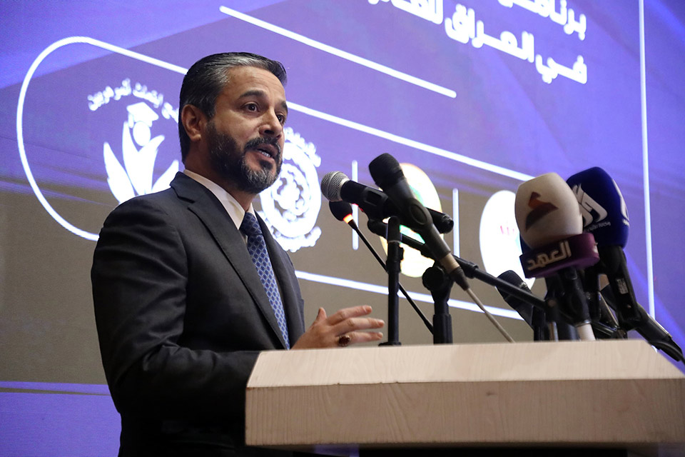 وأكد في كلمته خلال الحفل الخاص بالمناسبة بحضور السيد وزير التربية الدكتور إبراهيم نامس الجبوري والسادة الوكلاء والمستشارين والمديرين العامين وحشد من الطلبة الموهوبين أن وزارة التعليم العالي والبحث العلمي اتخذت إجراءاتها بتأمين المتطلبات المالية اللازمة والتواصل مع الجامعات الأجنبية فيما وجه دائرة البعثات والملحقيات الثقافية بالتنفيذ والمتابعة واستكمال مسار البرنامج الخاص بابتعاث الموهوبين في التخصصات المتنوعة بالجامعات العالمية.