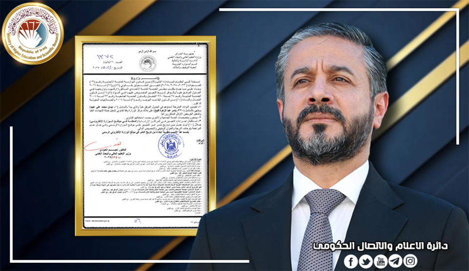 أعلن وزير التعليم العالي والبحث العلمي الدكتور نعيم العبودي إطلاق برنامج ابتعاث الموهوبين للعام 2026/2025 في الجامعات العالمية المتقدمة.