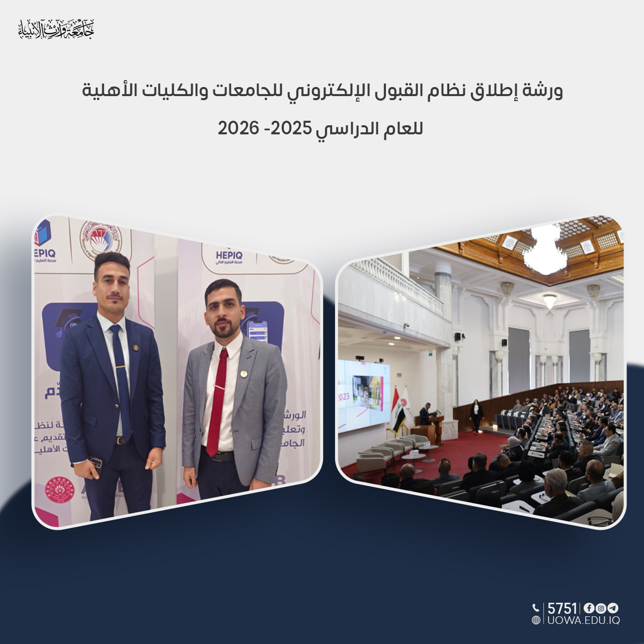 شارك رئيس قسم التسجيل والشؤون الطلابية السيد مؤيد سمير الخفاف وثلةٌ من موظفي القسم في الورشة التي أعدّتها وزارة التعليم العالي والبحث العلمي بشأن إطلاق نظام القبول الإلكتروني للجامعات والكليات الأهلية للعام الدراسي 2025-2026،تأتي هذه الورشة في إطار استعداد الوزارة لإطلاق دليل القبول الإلكتروني الجديد خلال الأيام القليلة المقبلة، تضمنت الورشة استعراضا لأبرز التطورات والاستحداثات الخاصة بآلية التقديم للعام الدراسي القادم كما أشار القائمون على الورشة إلى أن تعليمات القبول ستعتمد إلى حدّ كبير على تعليمات العام الماضي، مع إدخال بعض التعديلات التي تهدف إلى تنويع آلية التقديم وتحقيق الشفافية والدقة في القبول. ومن بين أهم التحديثات التي تم الإعلان عنها إضافة فئة الطلبة المتميزين ضمن فئات التقديم الجديدة، بما يضمن توسيع فرص القبول واستثمار الطاقات الأكاديمية المتميزة في المؤسسات التعليمية الأهلية.وتأتي مشاركة قسم التسجيل في هذه الورشة حرصًا على مواكبة المستجدات التقنية في أنظمة القبول، بما يسهم في تقديم خدمات التسجيل الفعّالة وسلسة للطلبة المتقدمين للعام الدراسي الجديد .