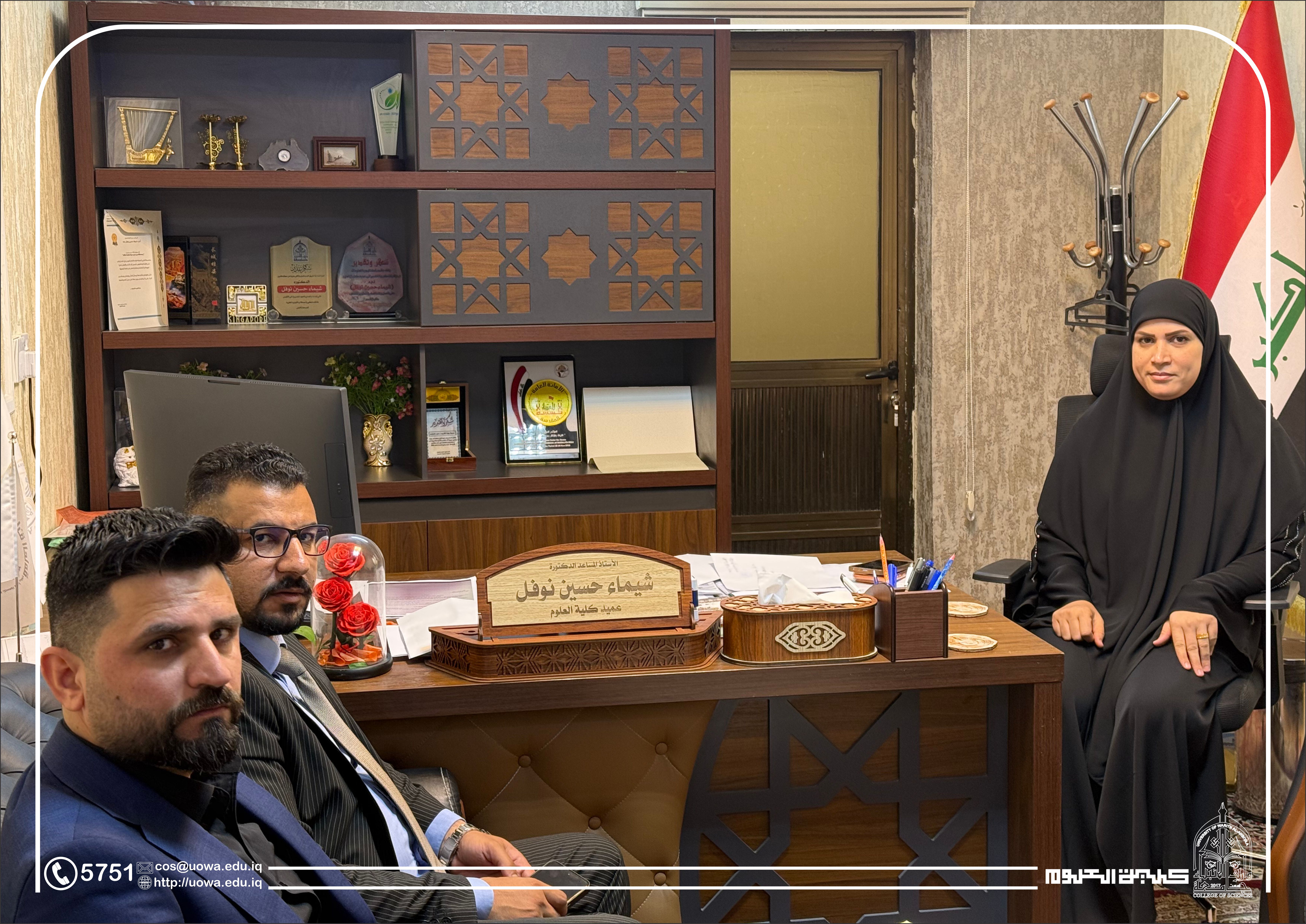 من اجل توسيع افاق التعاون العلمي والأكاديمي التقى رئيس الجامعة الاستاذ الدكتور طالب حسن الموسوي بعميد كلية الحقوق في المملكة الأردنية الهاشمية الدكتور عمر محمود اعمر الذي أبدى اعجابه بالجامعة وبالبنى التحتيه لها ، وعبر عن أمله في ان يتم التعاون بين كلية الحقوق في الاردن وجامعة وارث الأنبياء