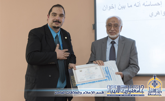 بمبادرة رائعة ملئها روح التعاون وتعبيراً عن فرحتهم الغامرة بالصرح الجامعي الفتي زار جامعة وارث الانبياء وفد من جامعة كربلاء حيث ذكر التدريسي في كلية القانون  الدكتور عباس علي محمد الحسيني أن زيارة الوفد جاءت على ضوء أهمية الجامعة الجغرافية والعلمية ولما تحمله من بركات الراعي الاول لها وهو سيد الشهداء (سلام الله عليه) وكذلك وجود كوادر متميزة نحن على دراية كاملة بعلميتها  وكفائتها في ادارة مفاصل مهمة في الجامعة متمثلتة بالسيد رئيس الجامعة والمساعد العلمي وعمداء الكليات الاربعة ,وأضاف أن املنا بالمستقبل هو اكتمال الاختصاصات العلمية والانسانية لهذه الجامعة خدمة للطلبة العراقيين, وبين التدريسي في جامعة كربلاء الاستاذ الدكتور باسم العقابي  تفائله بالمستقبل الواعد لجامعة وارث الانبياء لانها بنيت على اسس علمية رصينة وأبدت تميزا ملحوظ خلال الاوساط الجامعية من حيث توفير المستلزمات المادية والبشرية, وأبدى الوفد شكره لما شهده من كرم الضيافة وحفاوة الاستقبال ودعى بالتوفيق للجامعة ولكوادرها بالازدهار والتميز , وعلى هامش الزيارة تسلم الضيوف شهادات شكر وتقدير من سيادة رئيس الجامعة لما أبدوه من روح تعاون عالية ومساهمة فاعلة في سمو العلم والمعرفة خدمة للعراق , علما أن الدكتور عباس الحسيني شغل منصب المستشار الثقافي الإقليمي  لجمهورية العراق في لبنان والدكتور باسم العقابي شغل منصب المدير العامِّ للأكاديميَّة العراقية لمكافحة الفساد  .