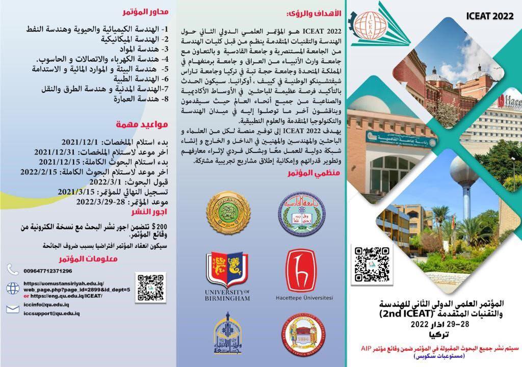 بالتعاون مع جامعة وارث الأنبياء(عليه السلام) كلية الهندسة في الجامعة المستنصرية تستعد لعقد مؤتمرها الدولي العلمي للهندسة والتقنيات المتقدمة‪ICEAT2022 ‬