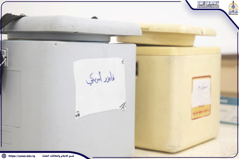 جامعة وارث الانبياء(عليه السلام) وبالتعاون مع دائرة صحة كربلاء المقدسة تنفذ حملة تطعيم بلقاح COVID-19بناءً على توجيهات وزارة التعليم العالي والبحث العلمي ووزارة الصحة العراقية ،، نظمت الجامعة وبالتعاون مع دائرة صحة كربلاء المقدسة حملة تطعيم ضد فايروس كورونا COVID-19 لملاكاتها التدريسية والوظيفية والطلبة وجاءت هذه الحملة لحث الكوادر التدريسية والطلبة على اخذ اللقاح للحد من تفشي الوباء وحفاضاً على سلامة الجميع.