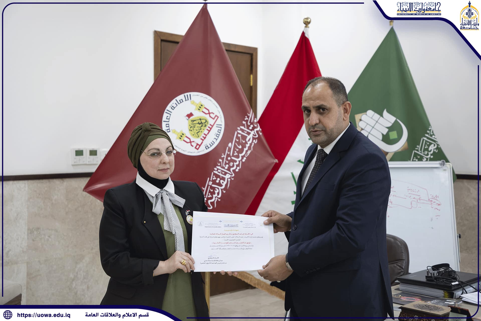 المتولي الشرعي للعتبة الحسينية المقدسة يكرم رئيس جامعة وارث الانبياء (عليه السلام ) بمناسبة قرب انتهاء مهامه