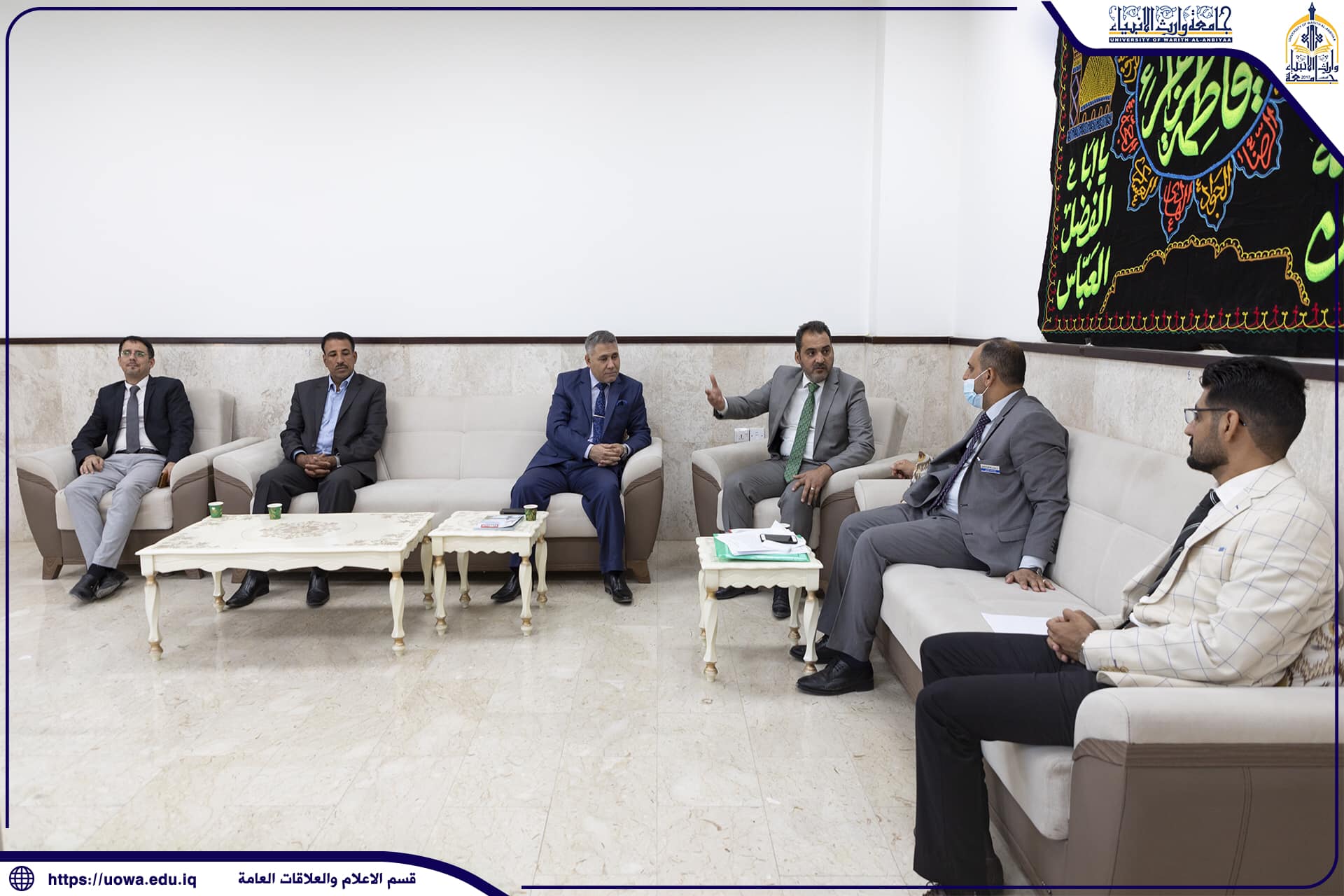 لمتابعة تنفيذ الإجراءات الوقائية واحصاء عدد الملقحين زارت لجنة من دائرة صحة محافظة كربلاء المقدسة حيث كان باستقبالهم السيد المساعد الإداري الأستاذ الدكتور نوفل الاعرجي حيث ابدى الوفد ارتياحة لماشاهده من التزام عالي بالإجراءات الوقائية داخل اروقة الجامعة وتجاوز عدد الملقحين ال90‎%‎ من السادة اعضاء هيئة التدريس والطلبة يذكر ان رئاسة جامعة وارث الانبياء(عليه السلام) دائما ما تؤكد على السادة اعضاء هيئة التدريس والطلبة بالالتزام بتطبيق الإجراءات الوقائية داخل اروقة الجامعة.