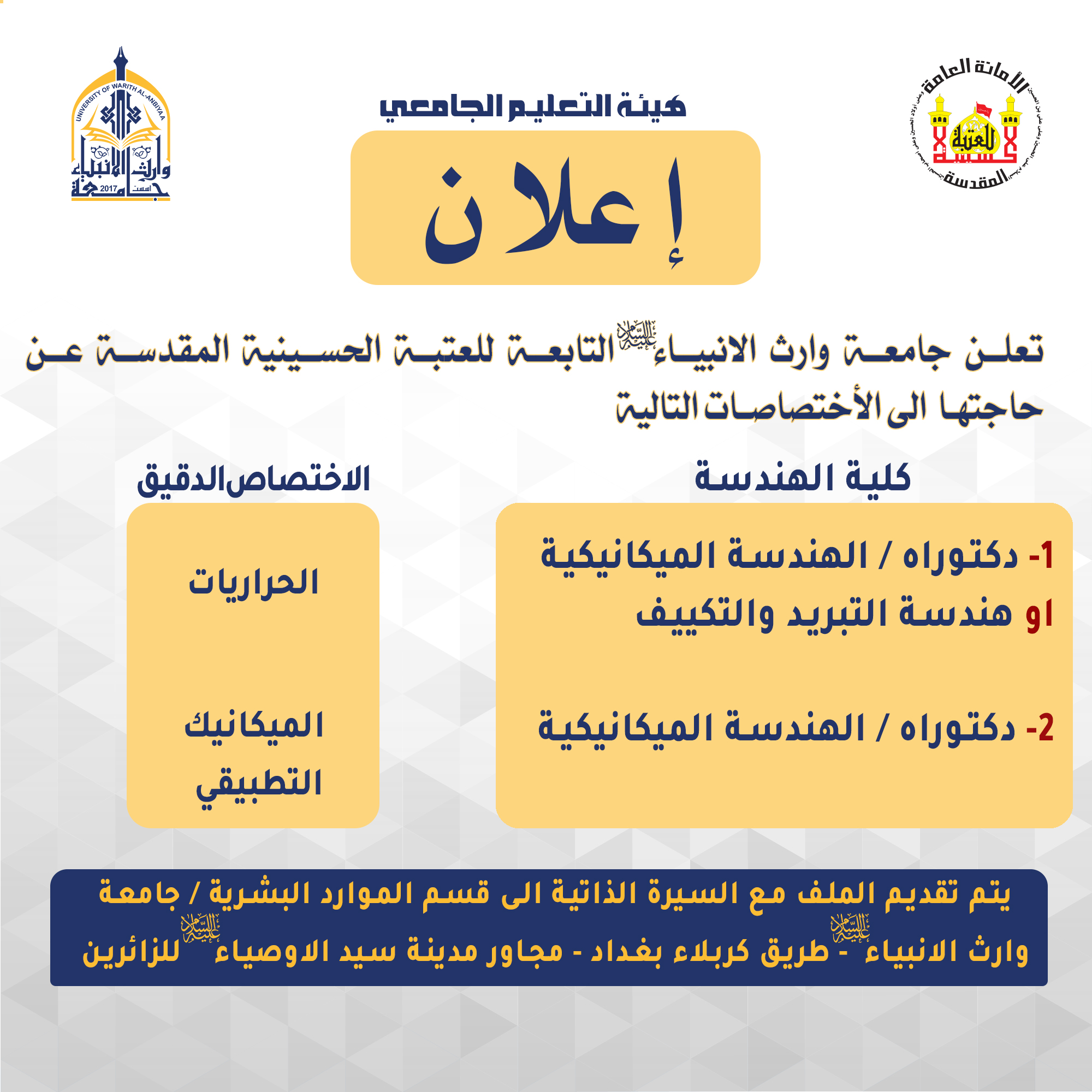 جامعة وارث الانبياء(عليه السلام) تباشر التدريب الصيفي لطلبة كلية الهندسة