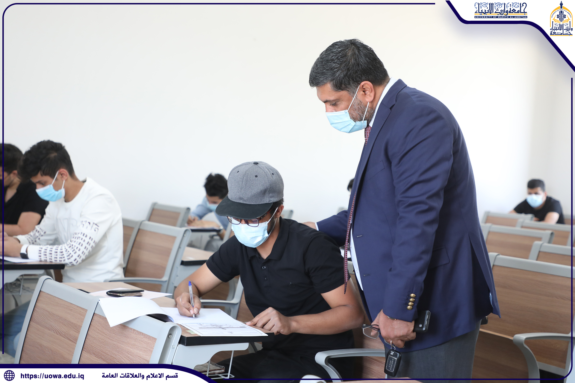 وسط إجراءات وقائية وصحية مشددة انطلقت صباح هذا اليوم الامتحانات الحضورية في كليات واقسام جامعة وارث الانبياء(عليه السلام) ، وعن هذا الموضوع تحدث السيد المساعد العلمي الاستاذ الدكتور عباس الدعمي قائلا:اليوم بحمد الله بدأت الامتحانات الحضورية لكلية التمريض وكلية العلوم الإسلامية ، مع تأكيد رئاسة الجامعة على ضرورة الالتزام العالي بالإجراءات الوقائية ، حيث تم تقسيم الطلبة الى وجبات صباحية ومسائية وتم مراعاة متطلبات الوزارة من حيث نسبة الحضور ومقدار التباعد بين الطلبة والمواد الدراسية المشمولة بالامتحانات الحضورية .واضاف الدعمي: نثمن عالياً الجهود التي يبذلها اعضاء الهيئة التدريسية في جامعتنا في ظل التحديات الراهنة كما نشيد بحرص طلبتنا الاعزاء على استمرار التحصيل العلمي وتلقي المعرفة الأكاديمية وإكمال العام الدراسي بنجاح.