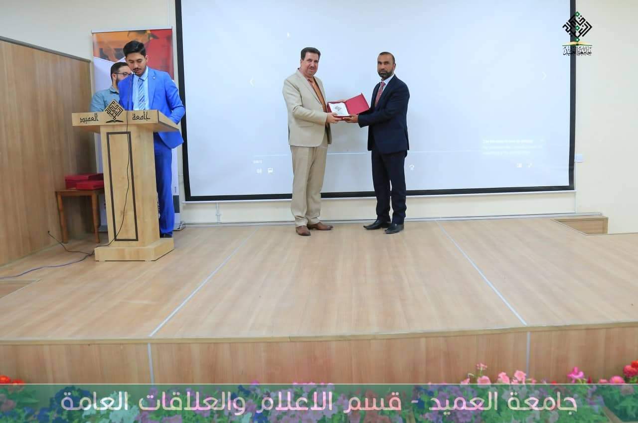 وفي الختام تم تكريم الاستاذ المحاضر بتوجية كتاب شكر وتقدير من قبل  مركز التعليم المستمر على يد أ.م.د.عدنان علوان الحلي / رئيس قسم العلوم الطبية.