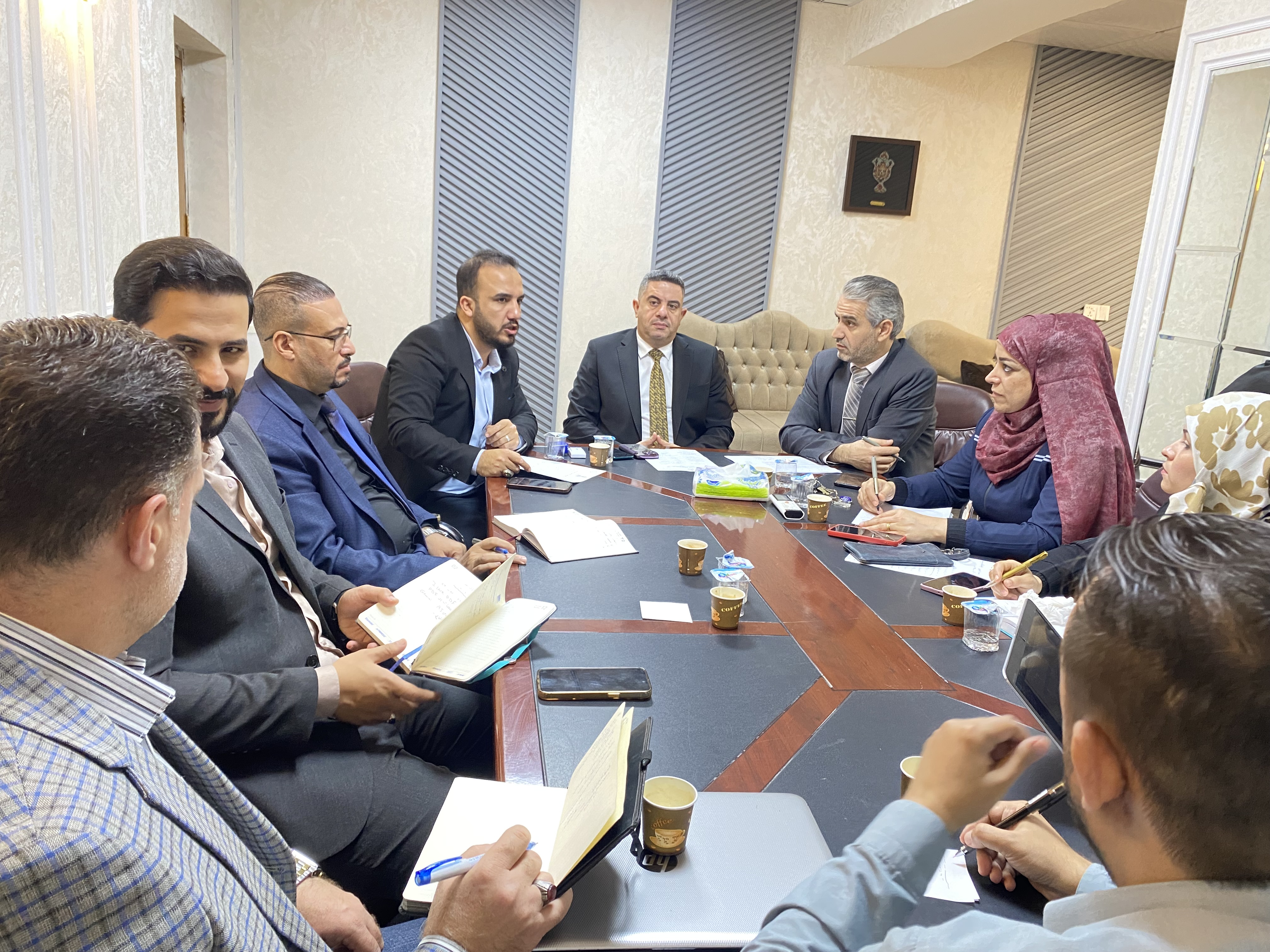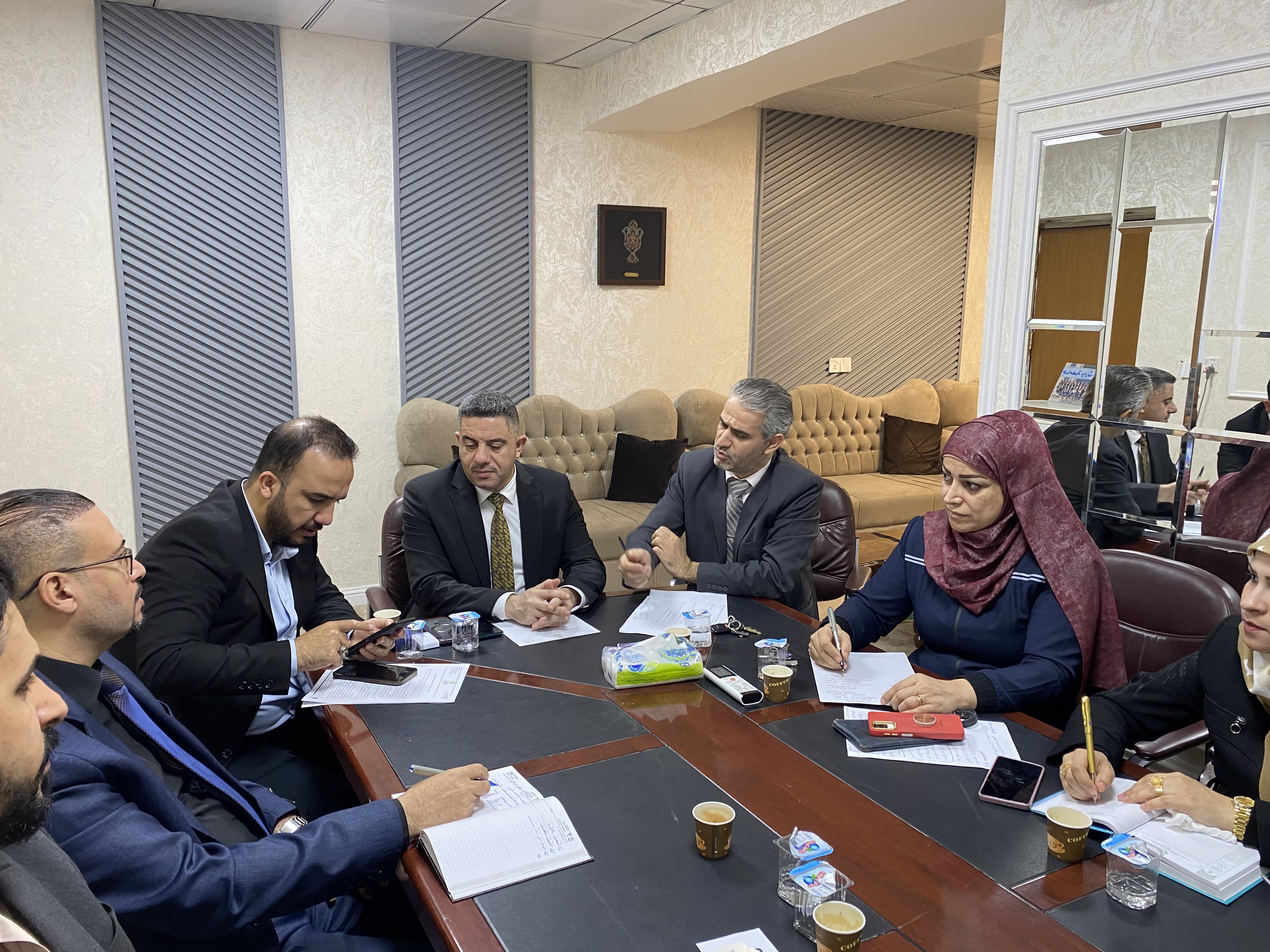 اجتماع لجنة الاعتماد البرامجي في كلية التمريض برئاسة الأستاذ الدكتور مرتضى الجبوري، ورئيس قسم ضمان  الجودة المدرس المساعد حسين الغانمي، يعد خطوة هامة نحو تعزيز جودة التعليم والبرامج الأكاديمية في الكلية.