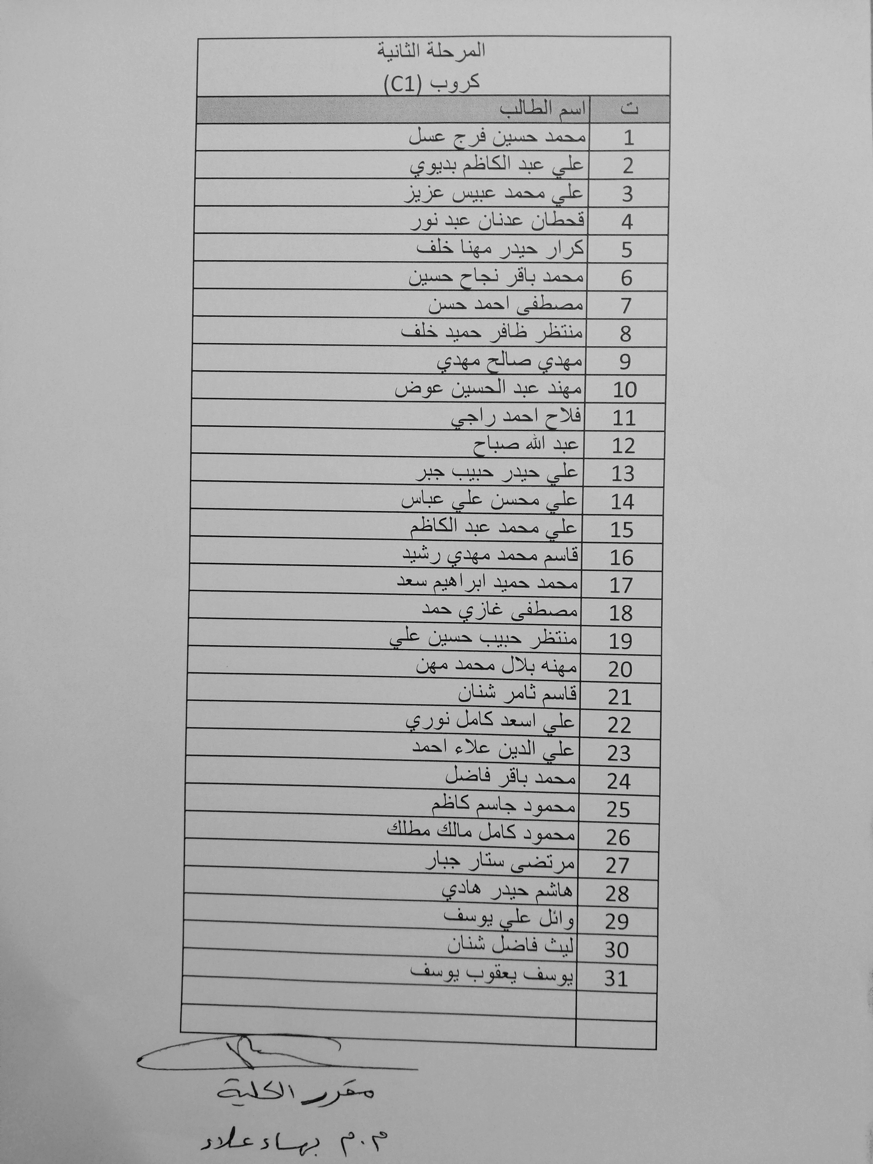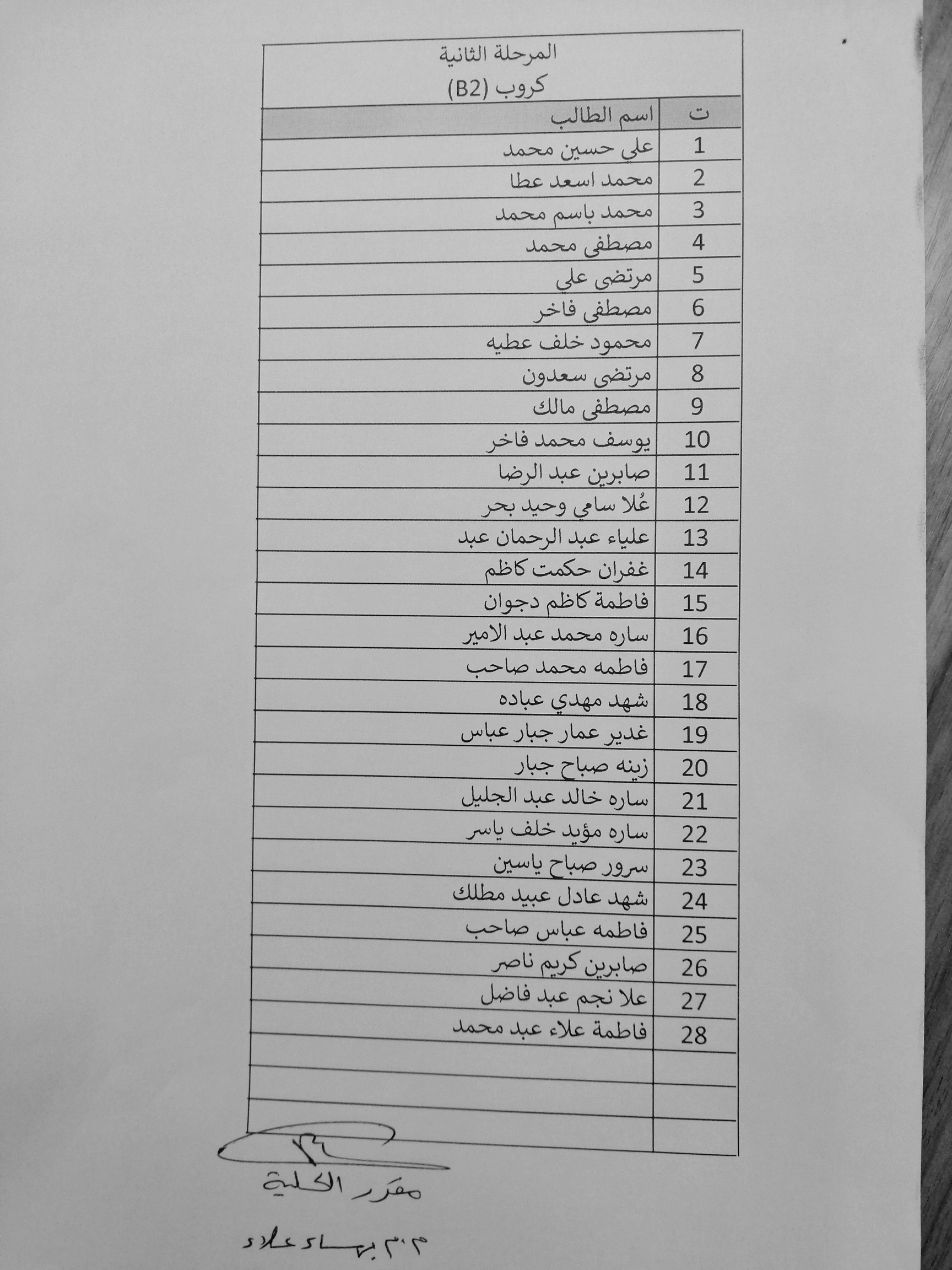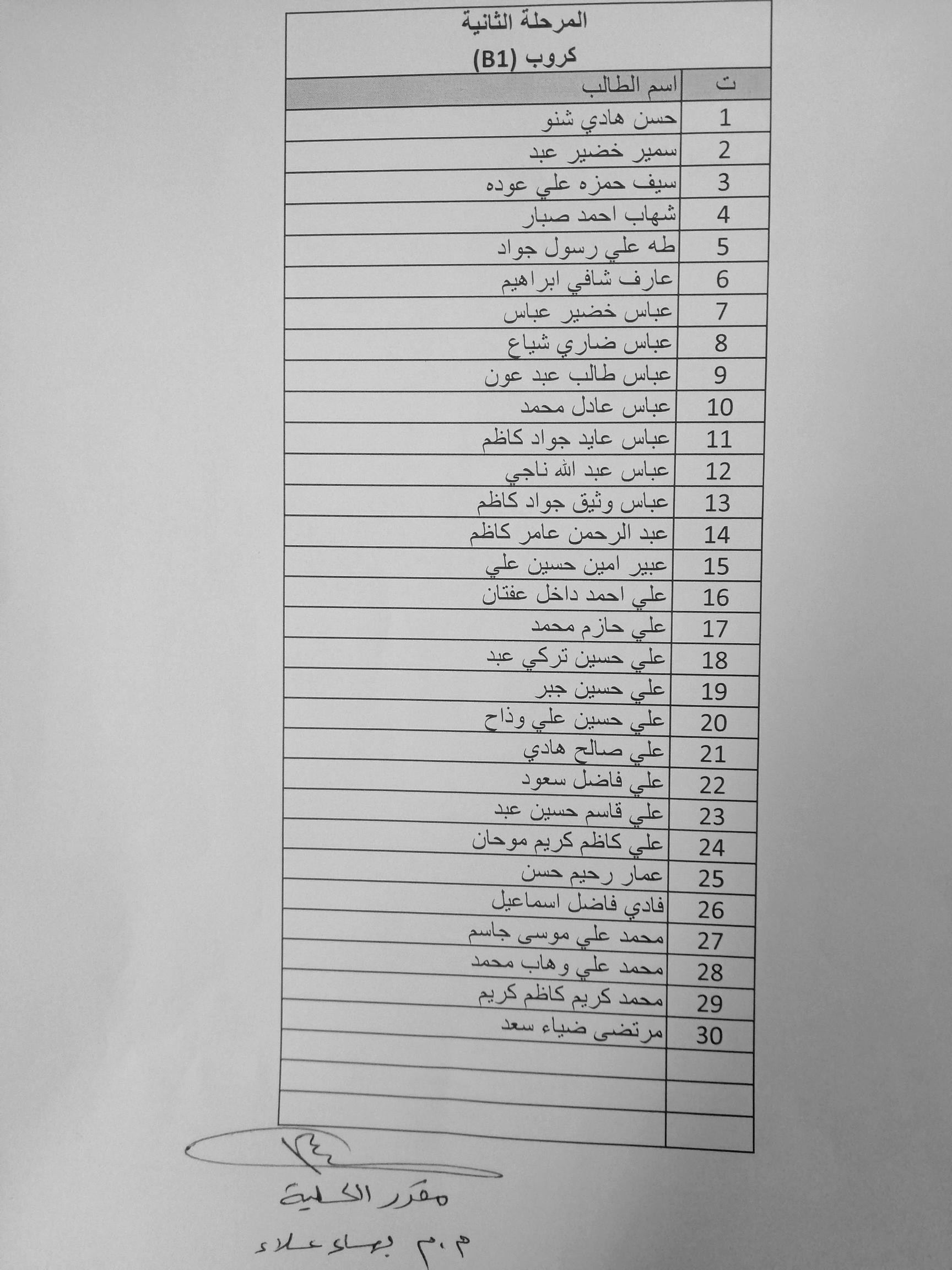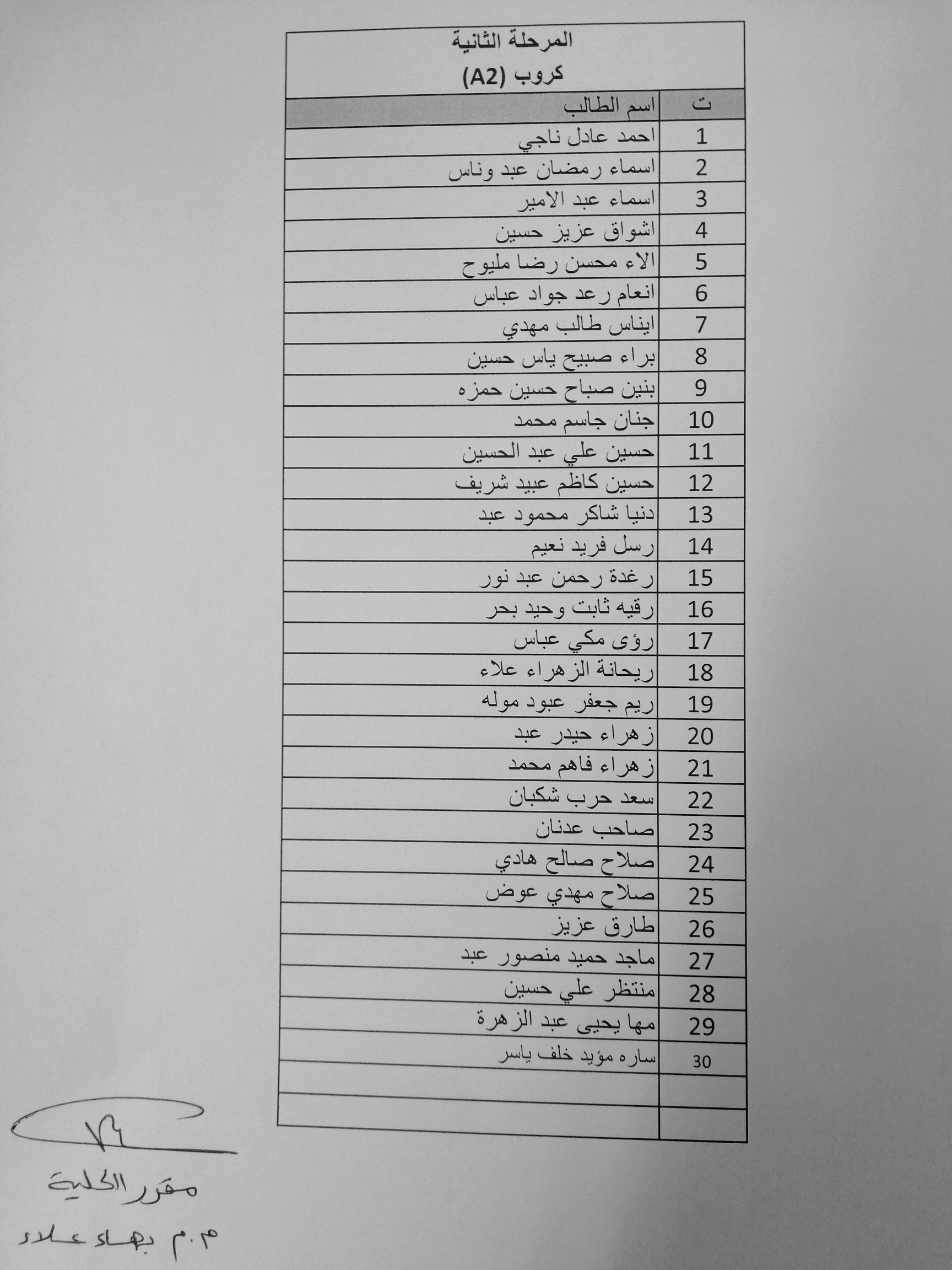 توزيع طلبة المرحلة الثانية على المجموعات في القاعات الدراسية / العام الدراسي ٢٠٢٠/٢٠١٩