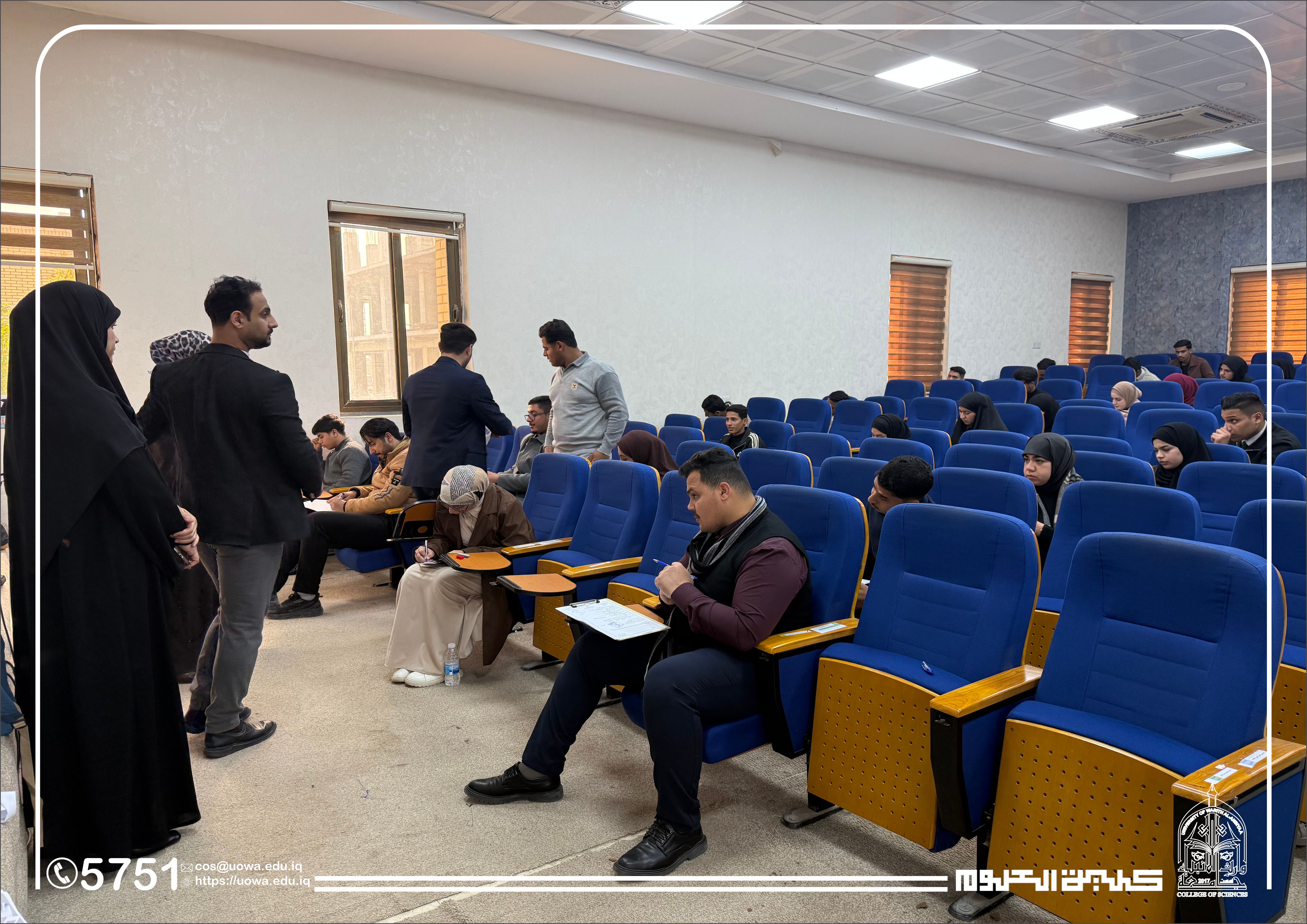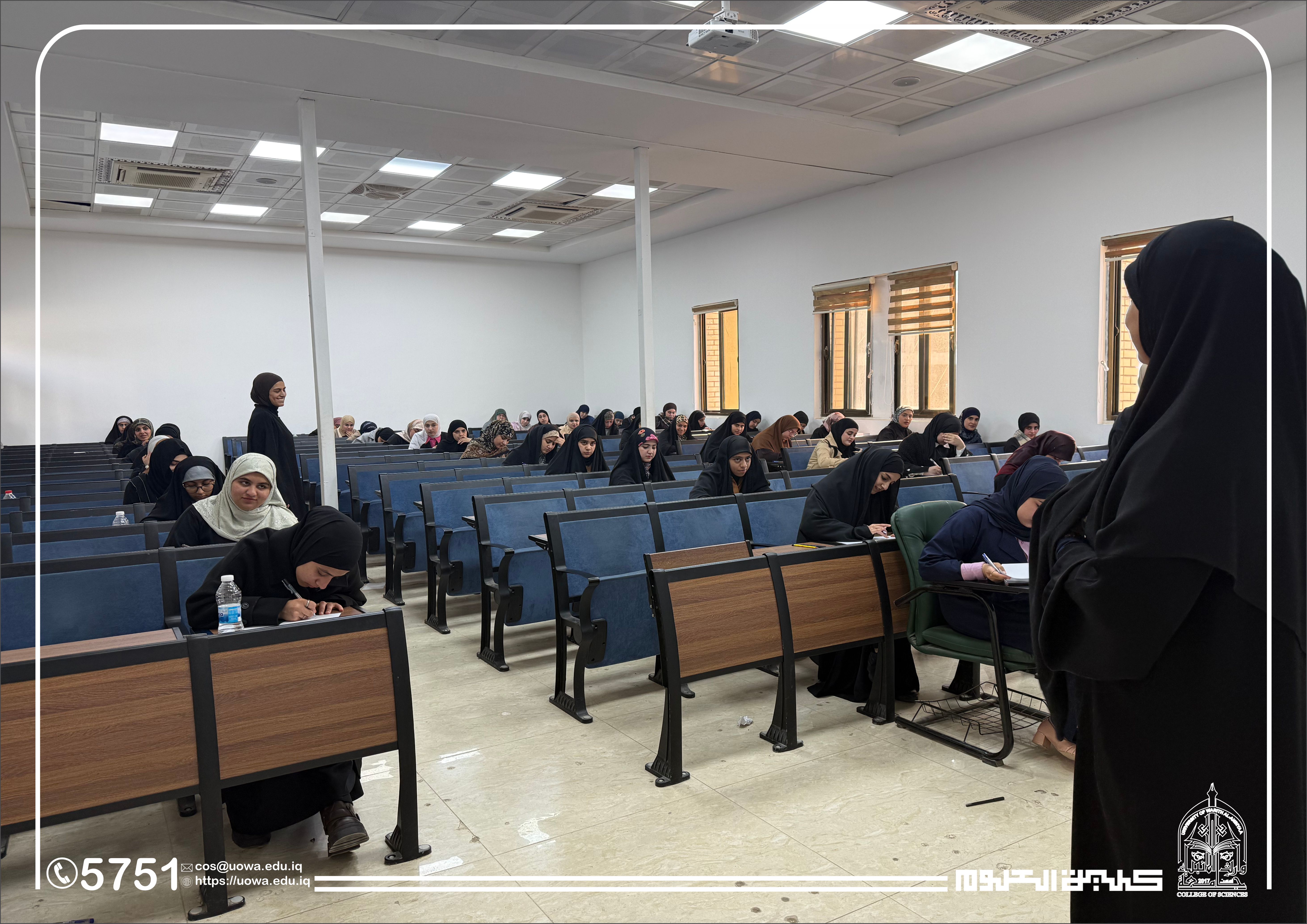 في إطار متابعته المستمرة للمسيرة العلمية وتوفير البيئة الامتحانية الملائمة، أجرى السيد عميد كلية العلوم في جامعة وارث الأنبياء (عليه السلام) جولة تفقدية للقاعات الامتحانية، وذلك لمتابعة سير امتحانات منتصف الفصل الدراسي (Midterm) لطلبة المرحلة الأولى في قسمي الفيزياء الطبية و الأدلة الجنائية.