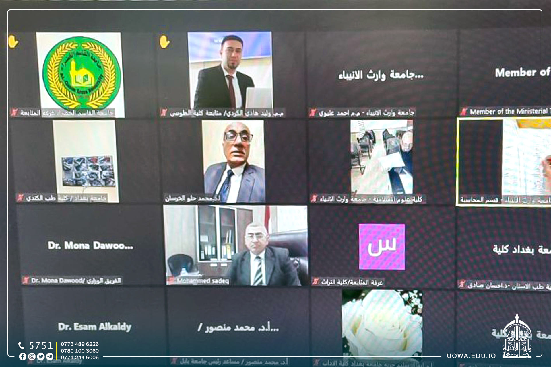 اقام المركز الوطني لتقييم الكفايات الطبية التابع الى هيئة الصحة والتعليم الجامعي، ورشة عمل للسادة مسؤولي ضمان الجودة والأداء الجامعي في كليات واقسام جامعتي وارث الانبياء(عليه السلام) والزهراء(عليها السلام) للبنات.