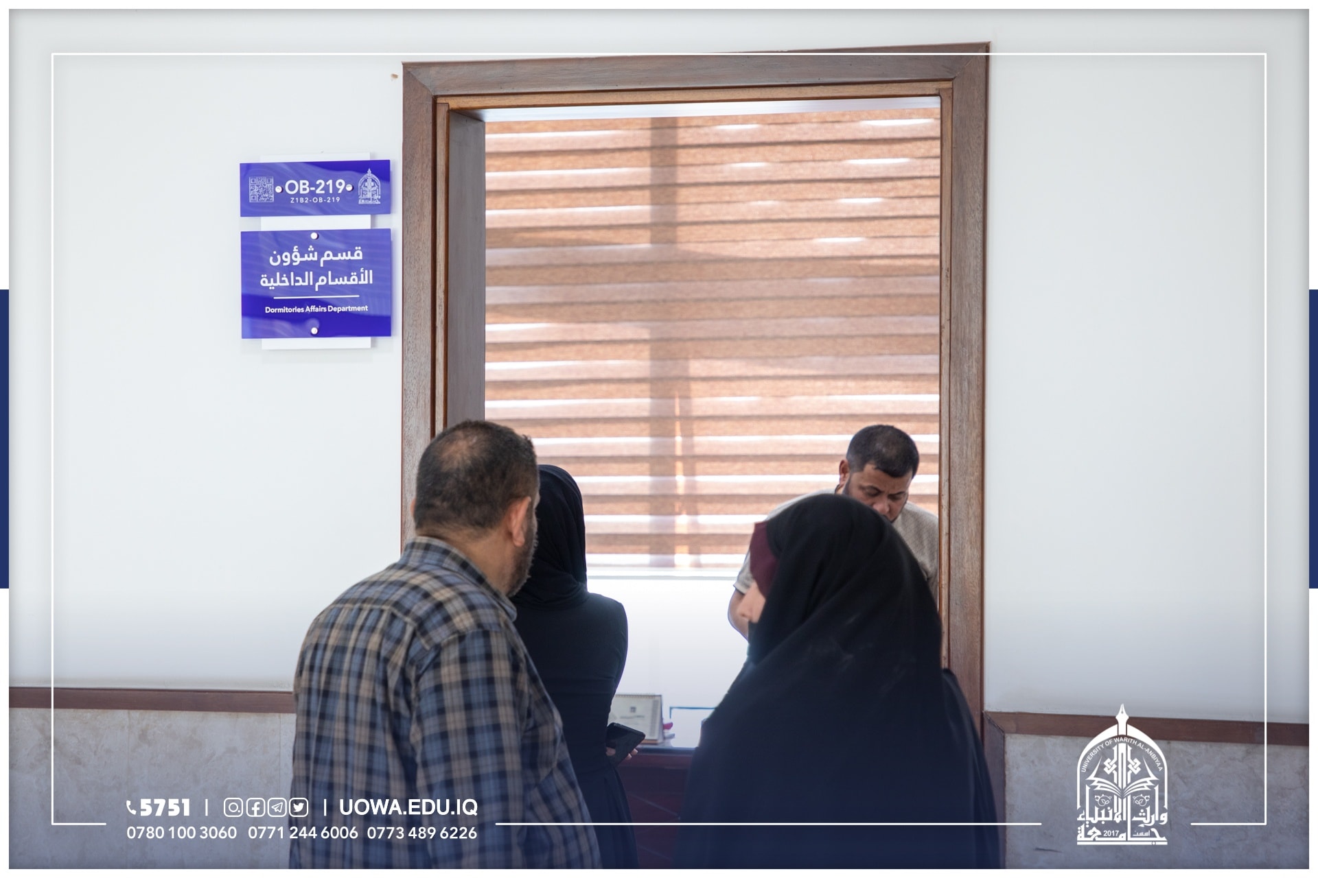 يستمر قسم شؤون الاقسام الداخلية في جامعة وارث الانبياء(عليه السلام) باستقبال الطلبة الاعزاء الراغبين بالتسجيل على الاقسام الداخلية.