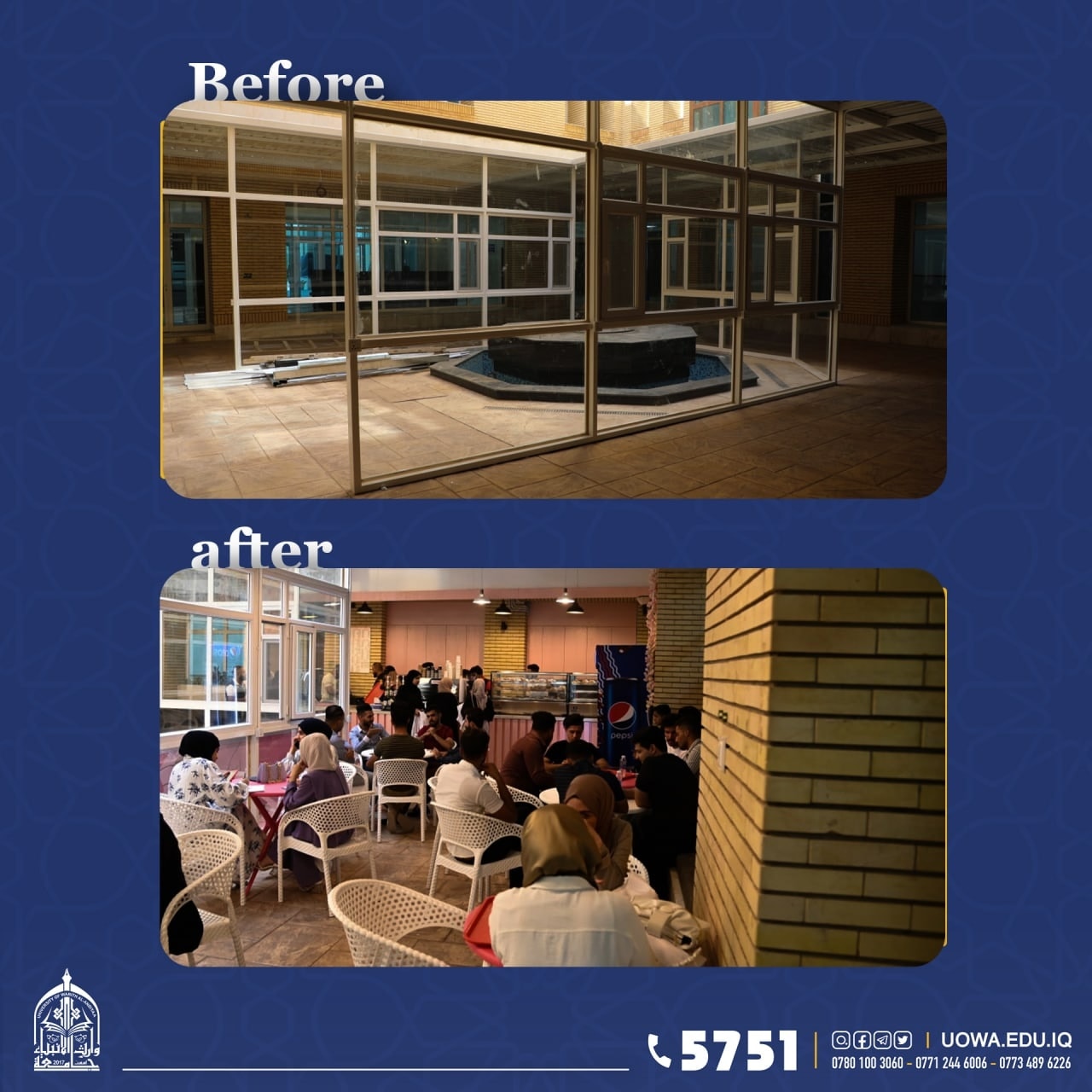 بالصور... افتتاح سلسلة نوادي حديثة في بناية كلية العصمة، واعادة تأهيل النادي الطلابي الرئيسي في الجامعة، حيث تولي رئاسة الجامعة اهتماماً بالغاً لافتتاح سلسلة نوادي اخرى مع بداية العام الدراسي الجديد.