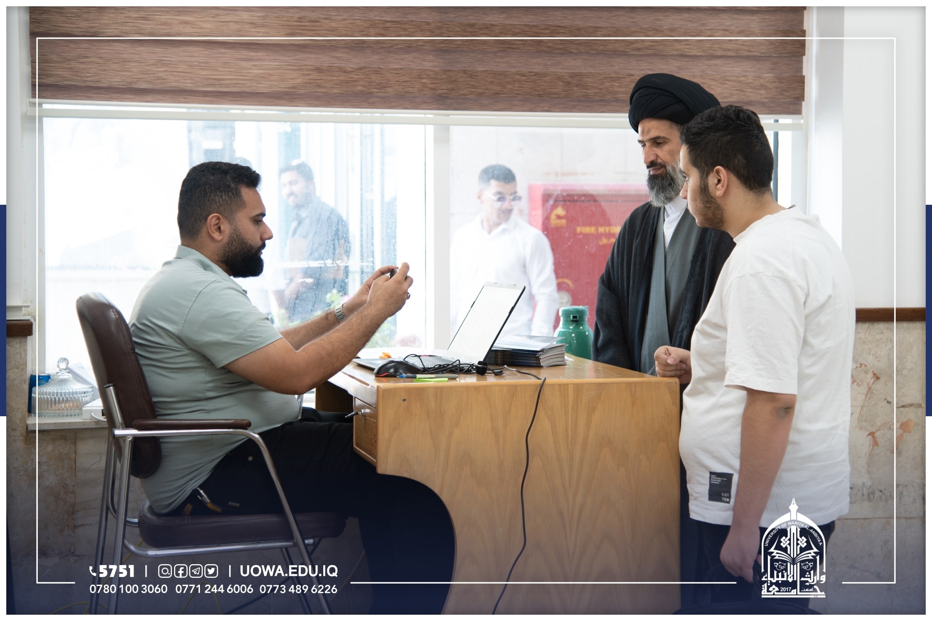 جانب من استقبال فريق التسجيل في جامعة وارث الانبياء(عليه السلام) للطلبة الاعزاء واولياء امورهم الكرام للاجابة عن استفساراتهم ومساعدتهم في انجاز اولى خطوات التقديم ،وهي انشاء حساب الطالب وملء البيانات وتفعيل القنوات الخاصة.